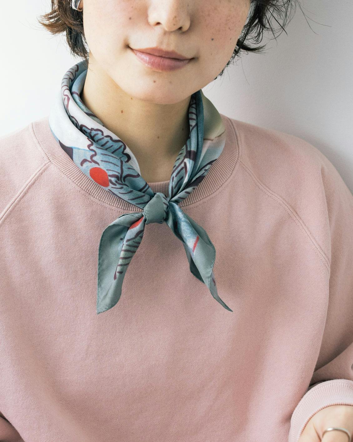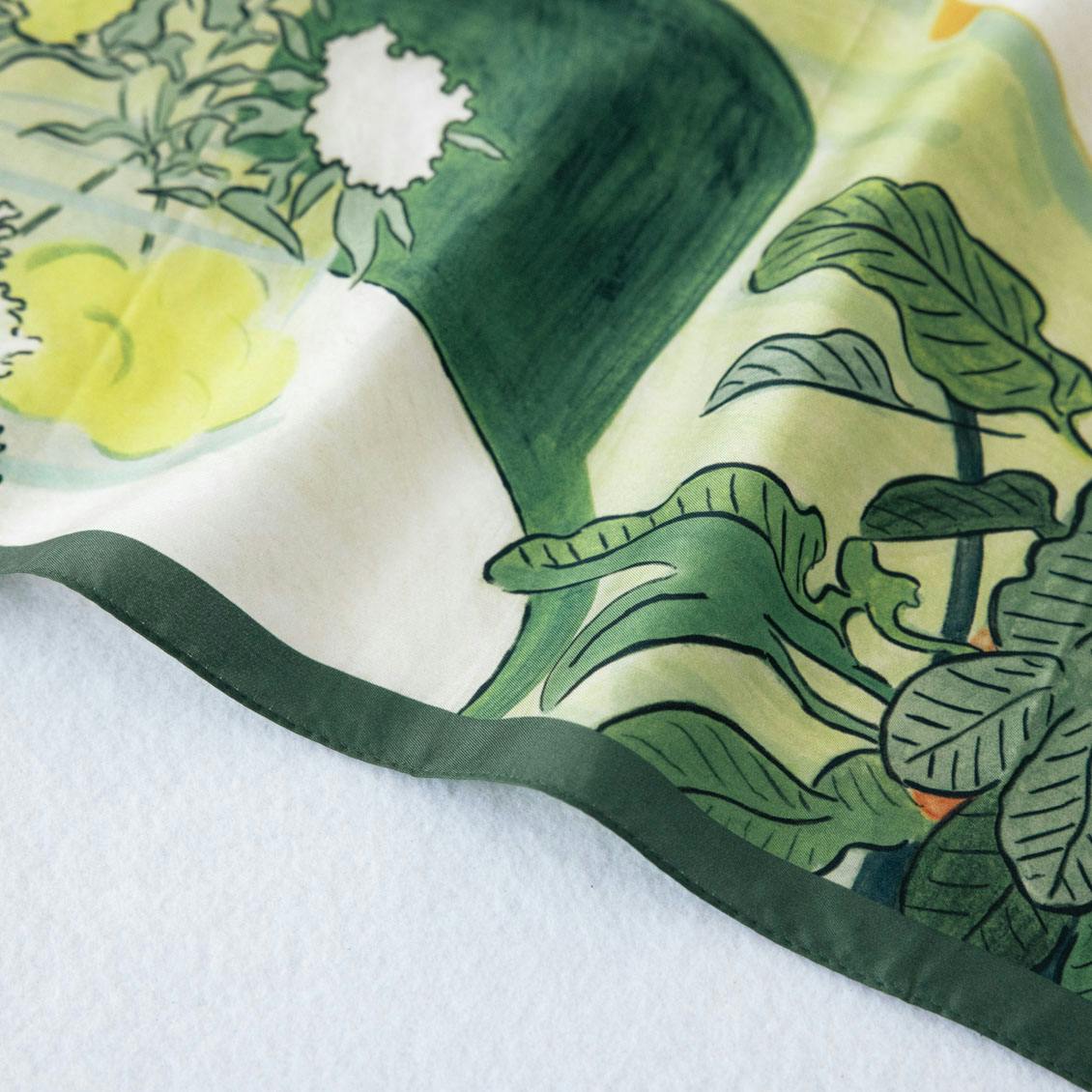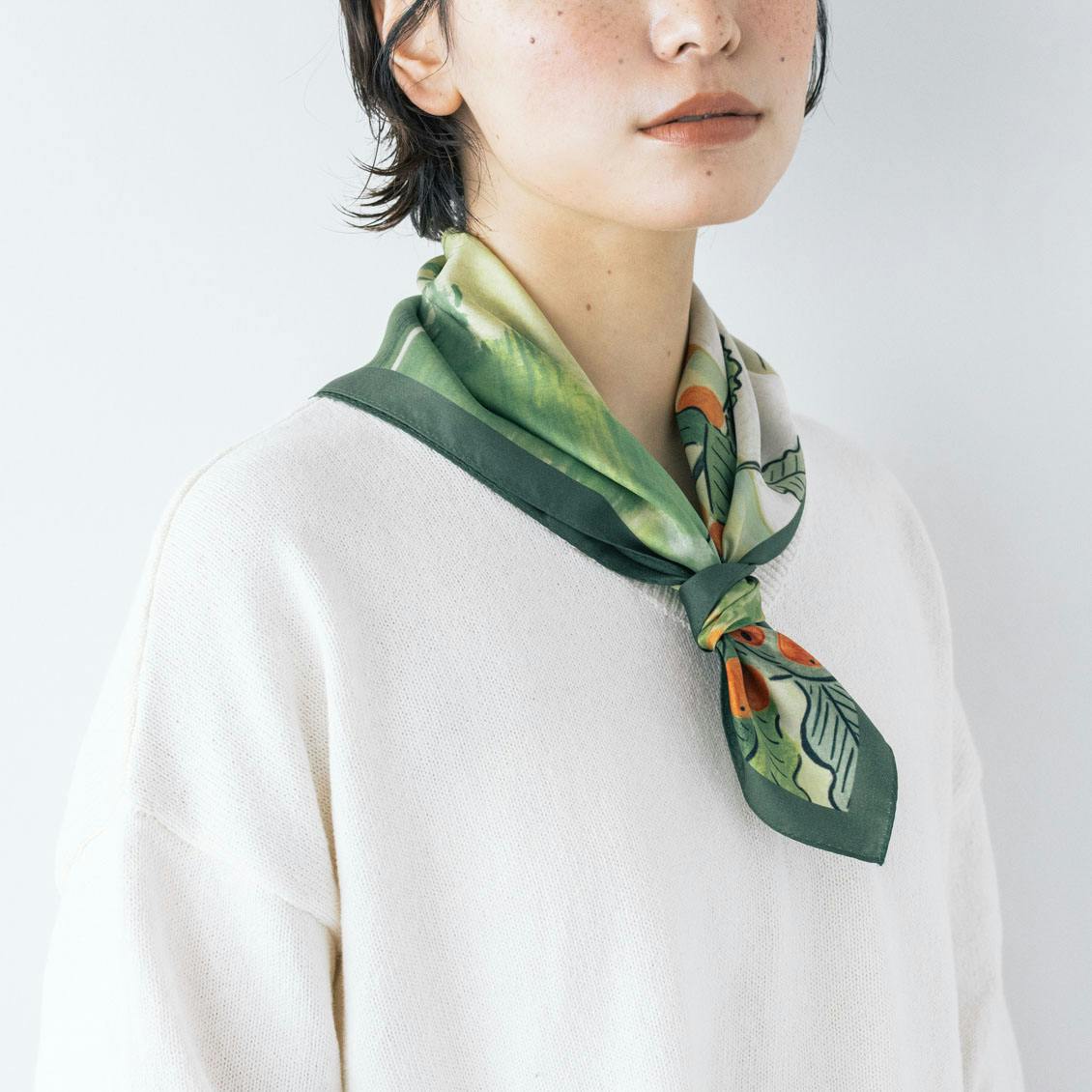 「日常に、ひとさじの憧れを」色づかいにこだわったシルクスカーフ / cozy time(グリーン・グレー)