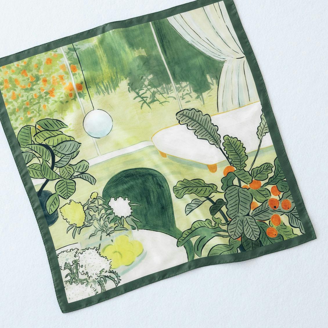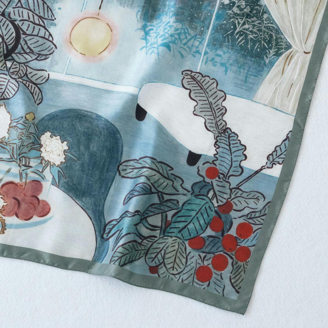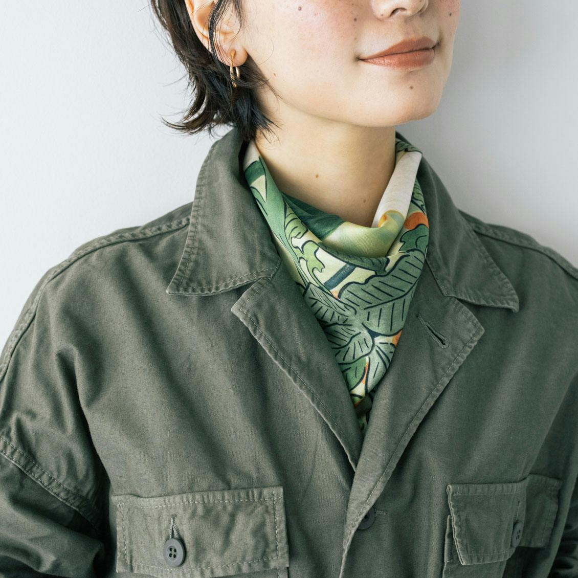 「日常に、ひとさじの憧れを」色づかいにこだわったシルクスカーフ / cozy time(グリーン・グレー)