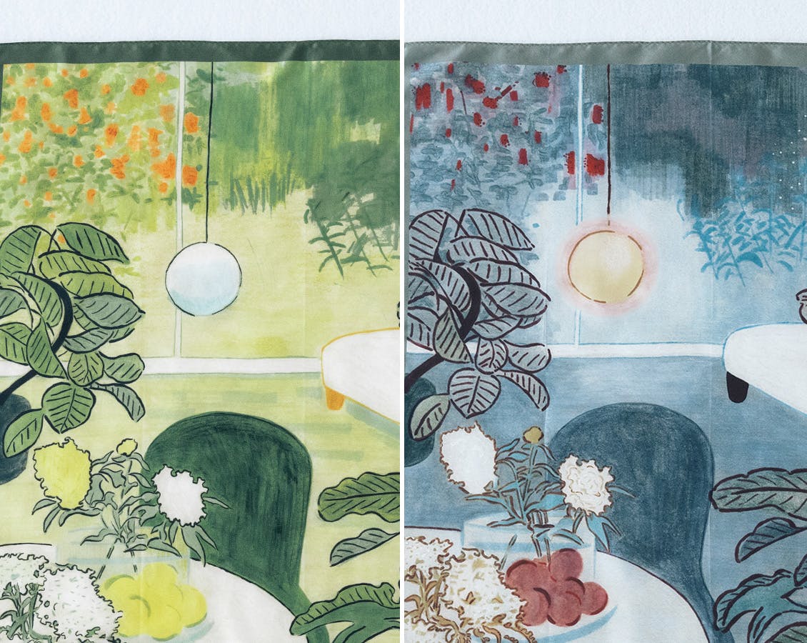 陰影のある色合いはどこかヴィンテージのような雰囲気も。まるで絵画を纏うような、大人な絵柄になりました。