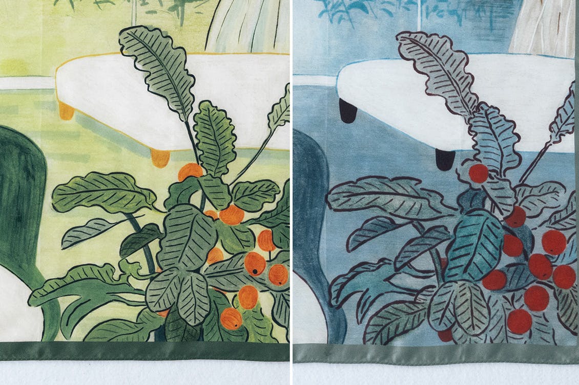 スカーフの絵柄を担当いただいたのは、前回同様イラストレーターの原倫子さん。