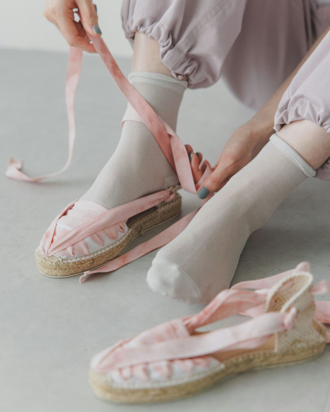 きらめかず、肌の色と自然に繋がるようなやわらかい存在感で、足元にふっと抜け感を作ってくれます。