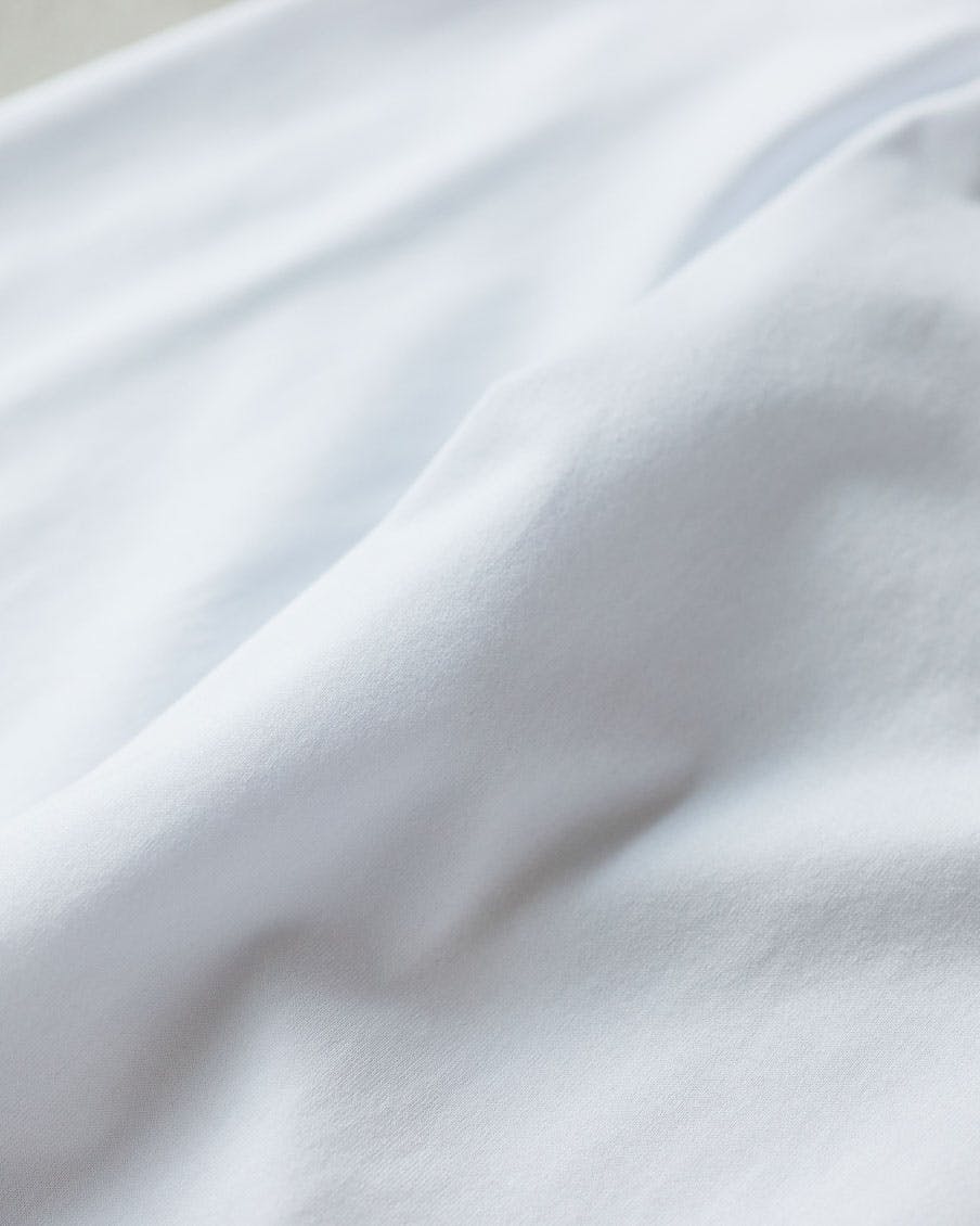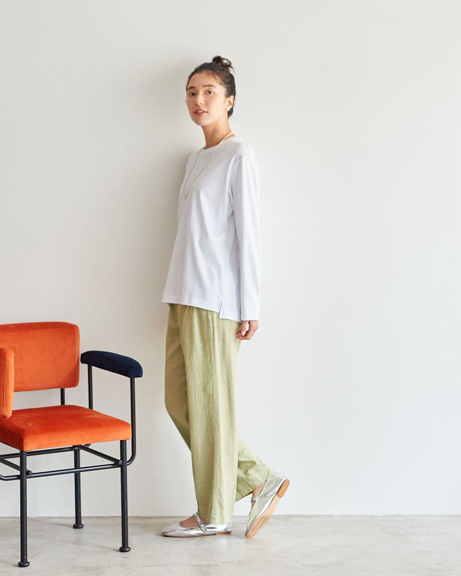 洋服の素材ひとつで毎日の心地よさはグンと変わるから、滑らかでサラリとした肌ざわりの生地を選びました。