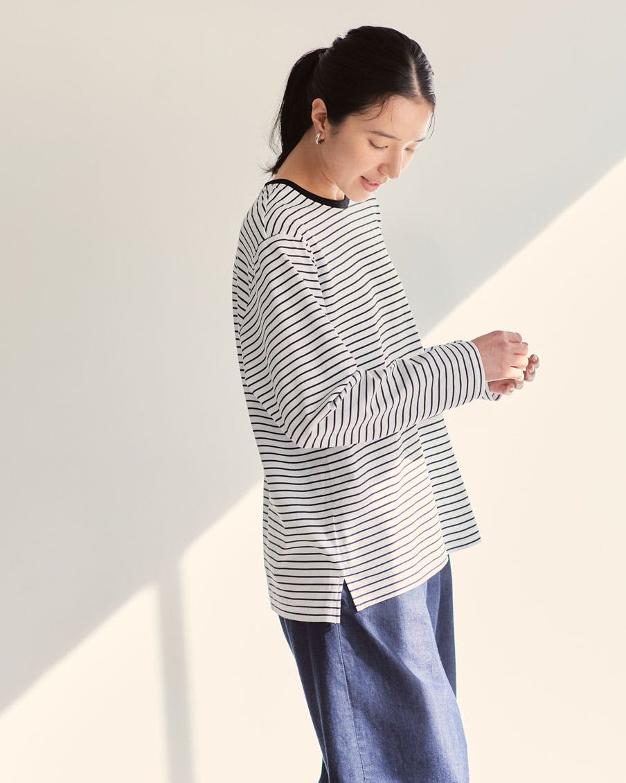 無地だけでなく、一枚でもコーデが成立しやすい「ボーダー柄」もご用意しました。