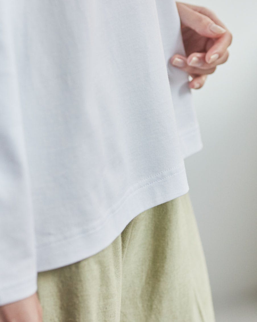 素肌に触れても心地いい生地に、身体のラインを拾いすぎないゆるやかなシルエット。