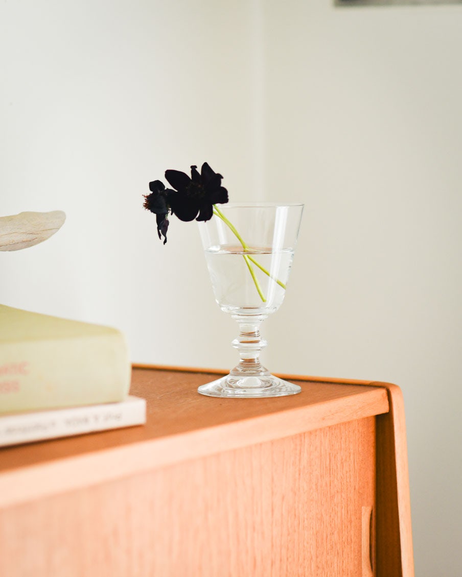 ステム部分にあしらわれた装飾や、スッと上に広がるグラスの形。