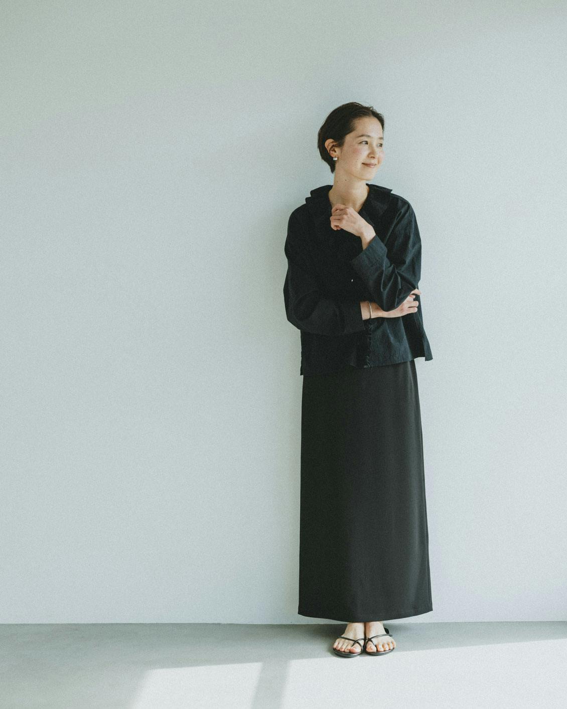 ボディ部分はゆとりのあるボックスシルエット。体のラインを拾わず、1枚でさらりと着ても成り立つ形です。