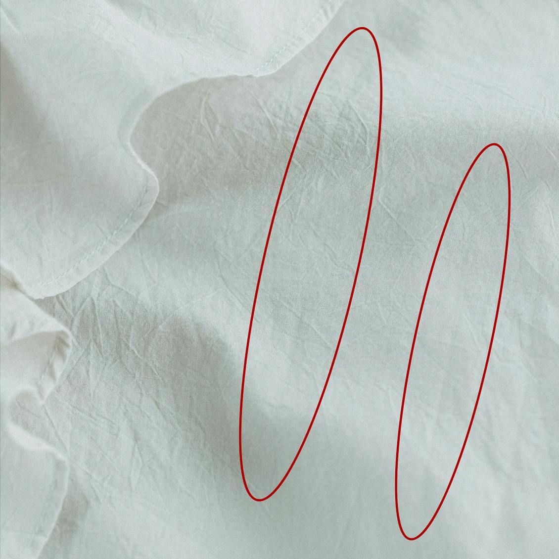 また生産の過程で、生地に長いシワが入ってしまう場合があります。こちらは良品の範囲内となりますので、あらかじめご了承ください。