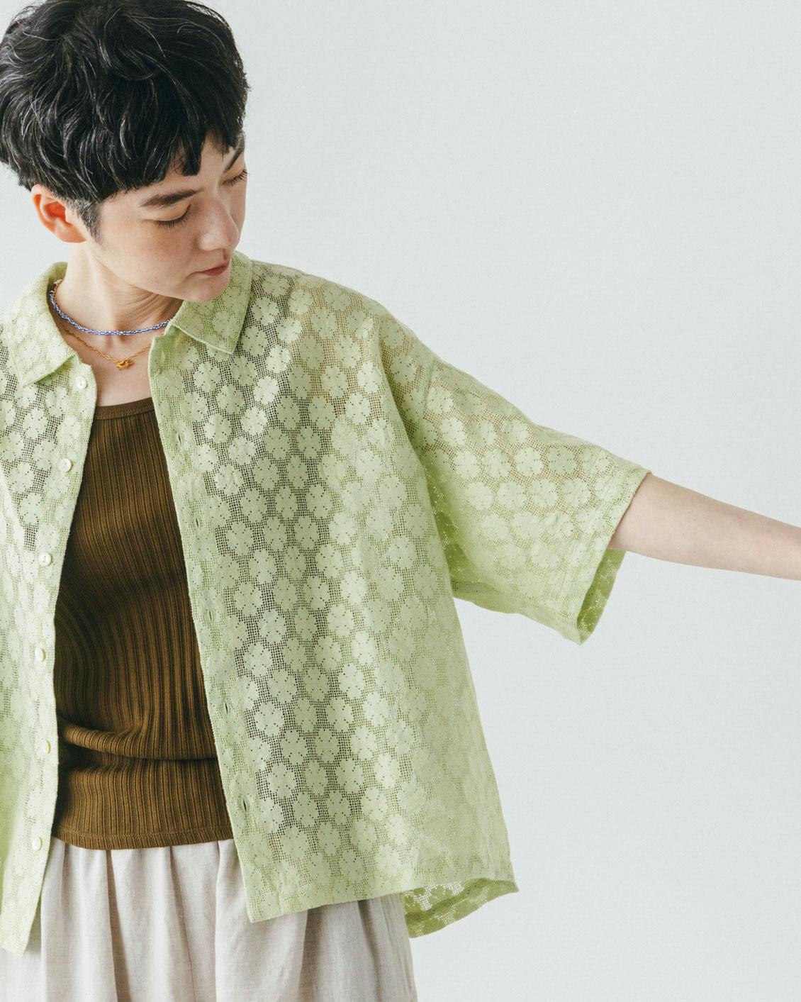 柔らかく、かろやかに。抜ける風が心地よく、繊細なレースの美しさが目を惹くシャツ。