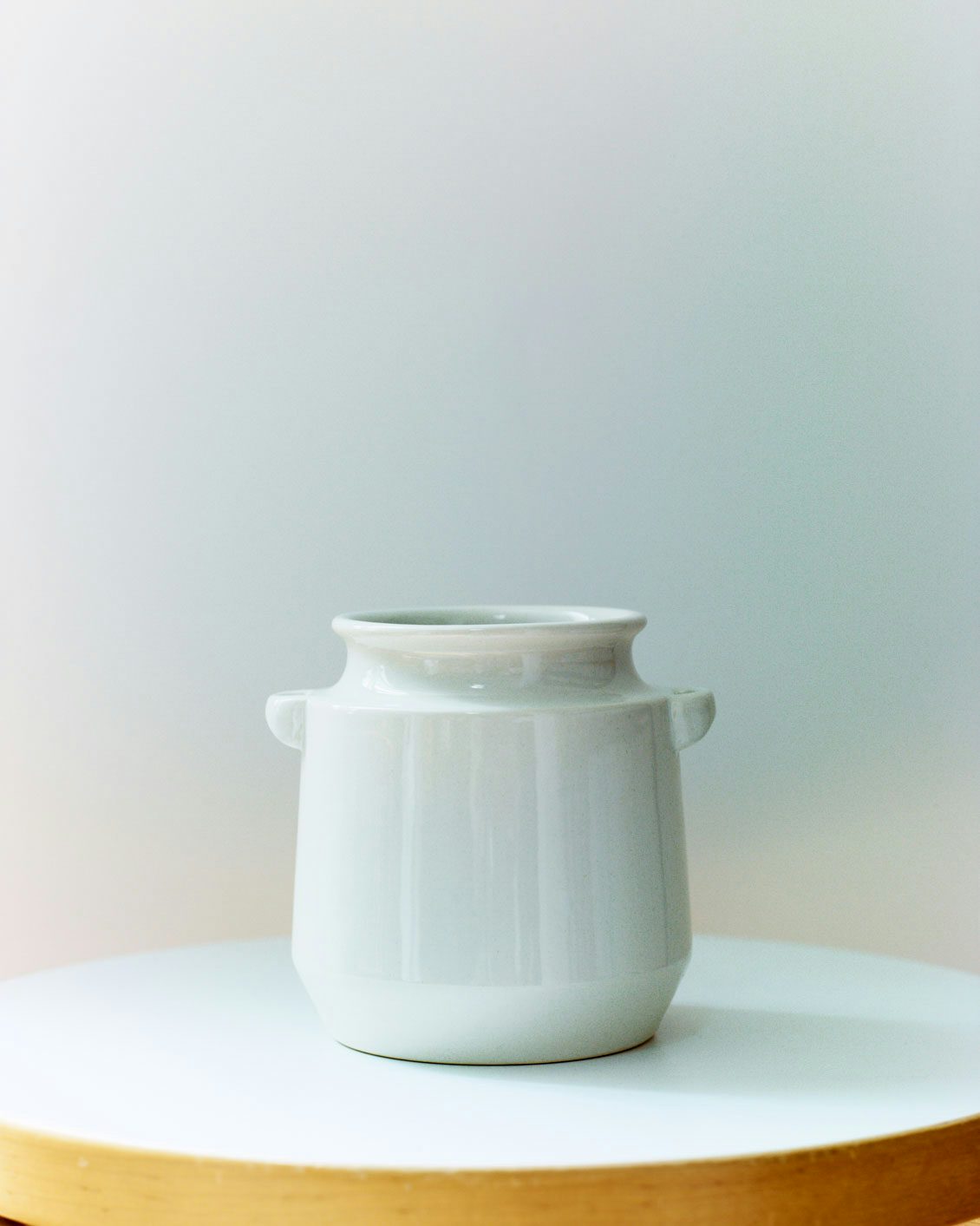 ころんとしたフォルムで安定感があり、両端にちょこんとついた持ち手がアクセントになっています。