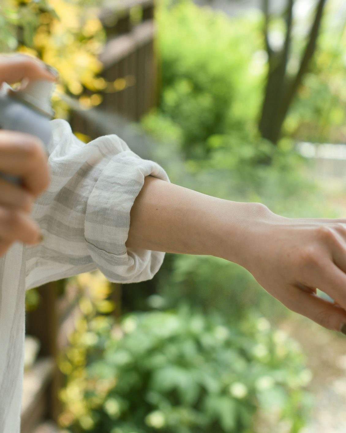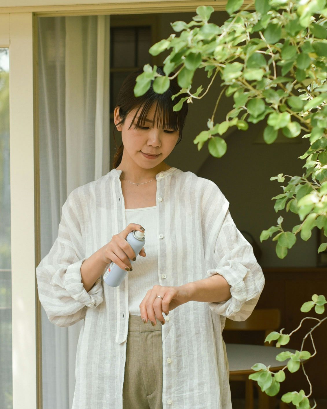 缶をよく振り、肌から10~20cm離して適量をスプレーし、なじませる。