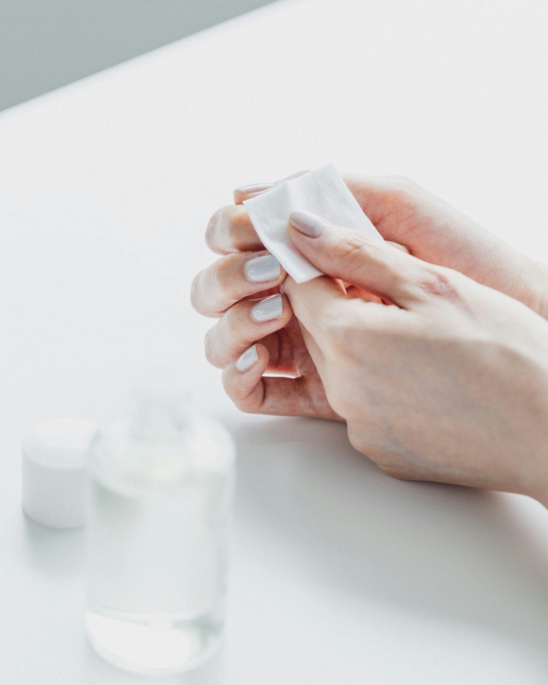 コットンに適量を含ませ、数秒爪に馴染ませてから拭き取ってください。