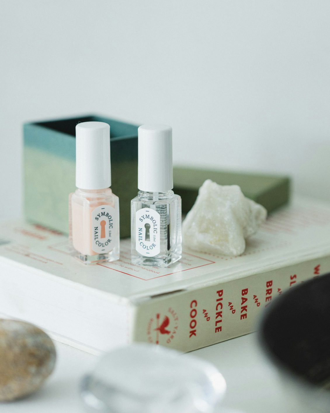ネイルカラーがより塗りやすく、きれいに保てるオリジナルのベースコートとトップコート。