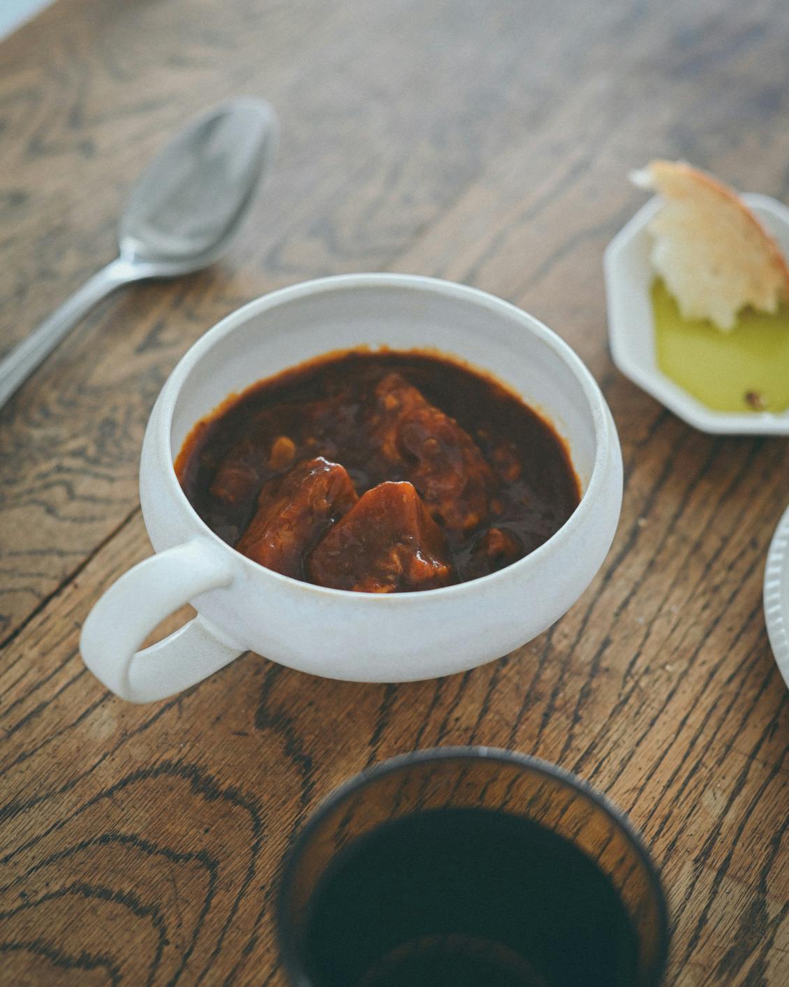 マグのようなデザインで、シンプルなコンソメスープも素敵にきまります。持ち手があるのもうれしいですよね。