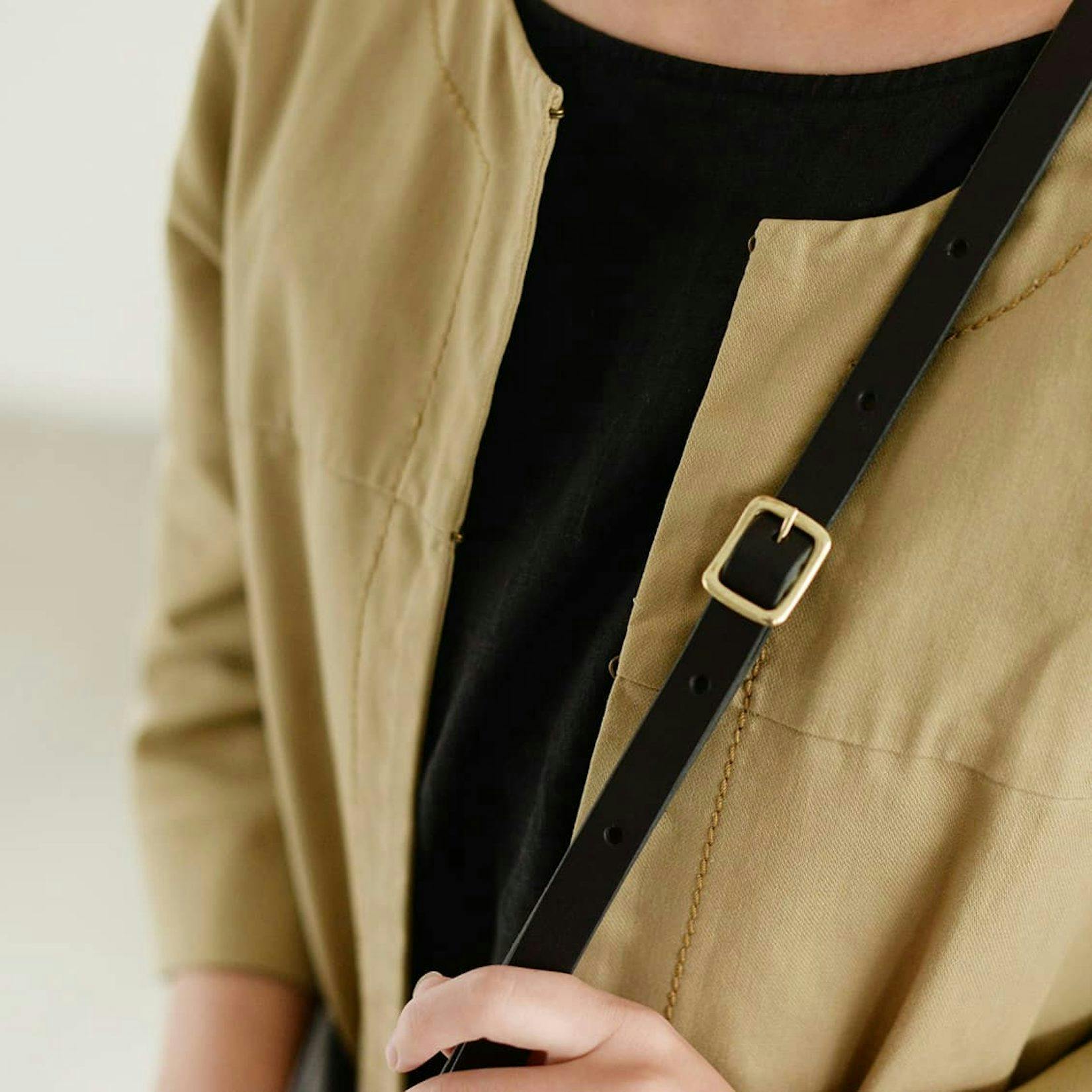 コーデが過ごしやすいカジュアルなものでも、バッグが本革であればそれだけで装いに大人っぽさと上質さが加わりそうです。北米産の丈夫な成牛革は、なめしは神戸、製造は大阪の革職人さんが、一つひとつ丁寧に作っています。
