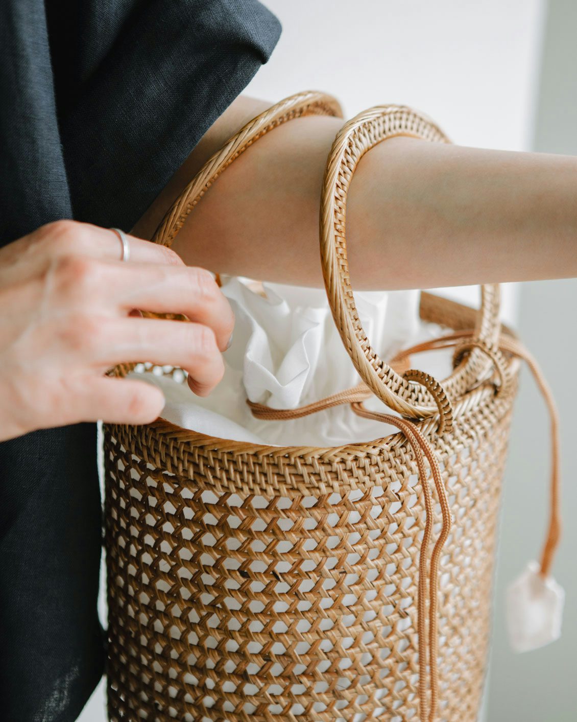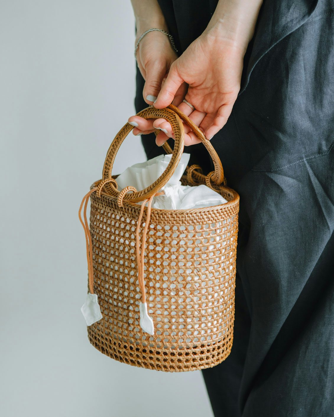 カゴバッグを持つと、ほんのりと漂うアジアらしい香り。