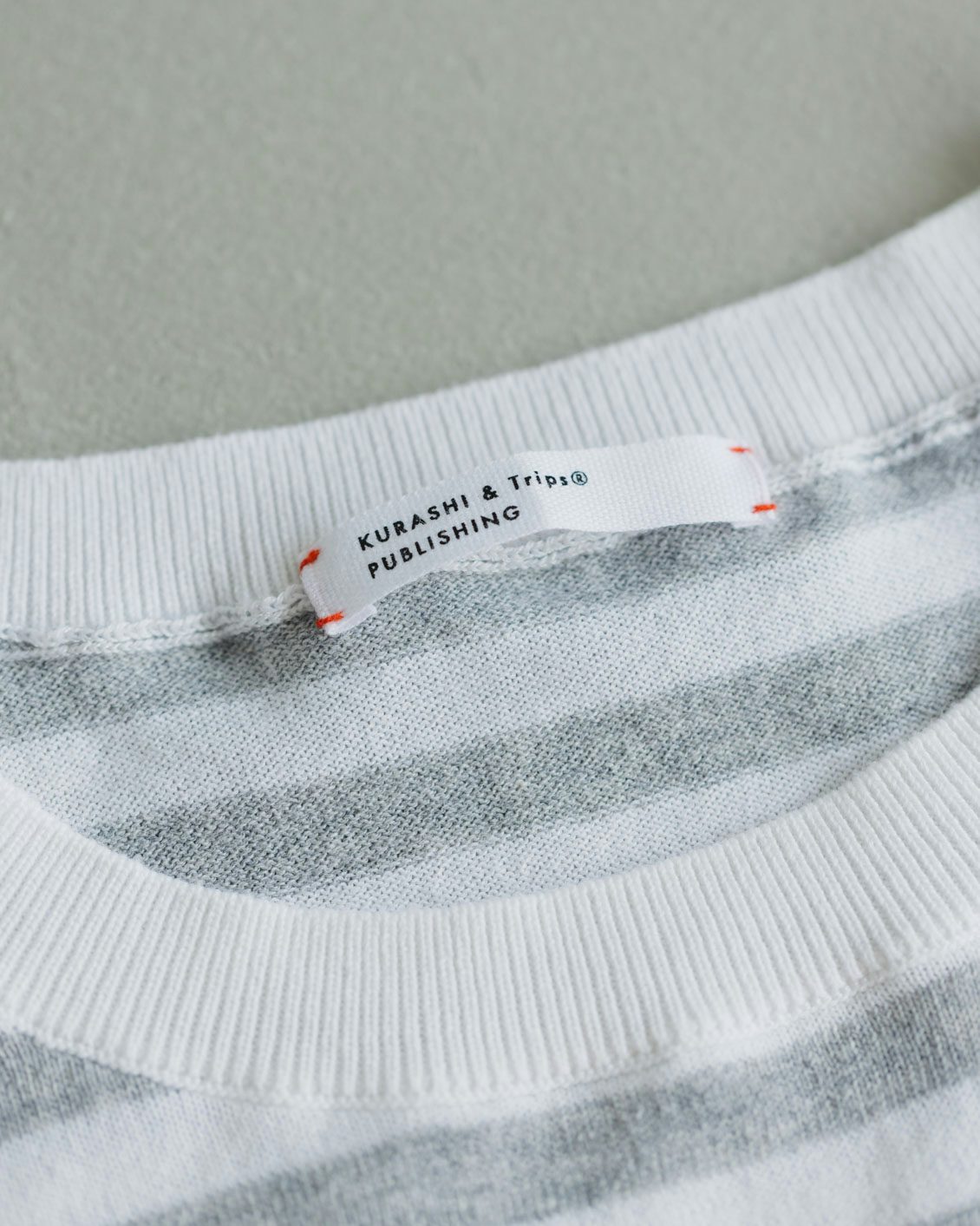 Permanent Ageからも「2色の幅が一緒の同ピッチが着こなしやすくて、ボーダーというのもわかりやすいですよ」とアドバイスをいただき、太すぎず細すぎず、絶妙な太さに着地しました。