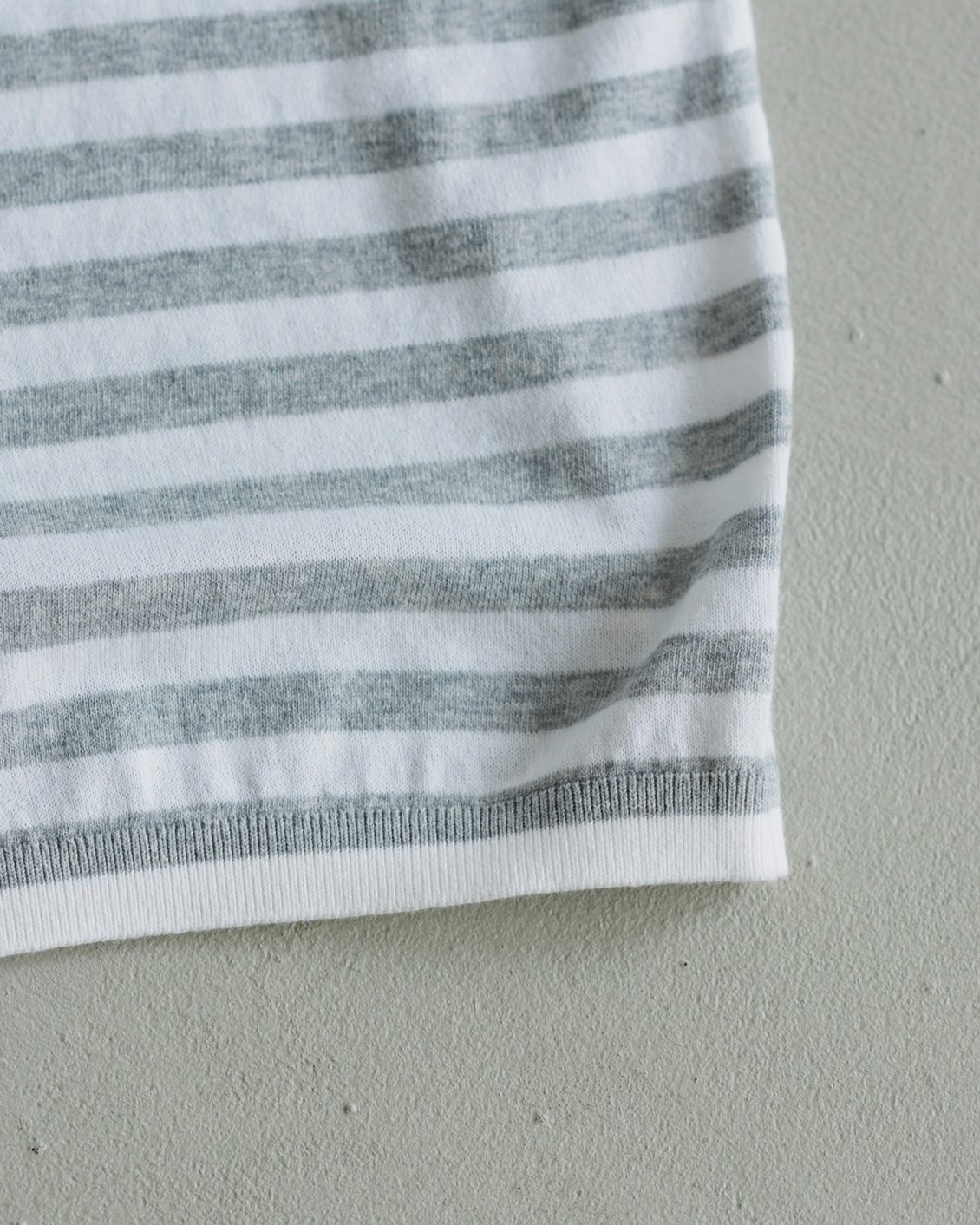 上質な定番服を作り続けるブランドならではのアドバイスのもと、ボーダーピッチからこだわり、上質なサマーニット素材を採用。