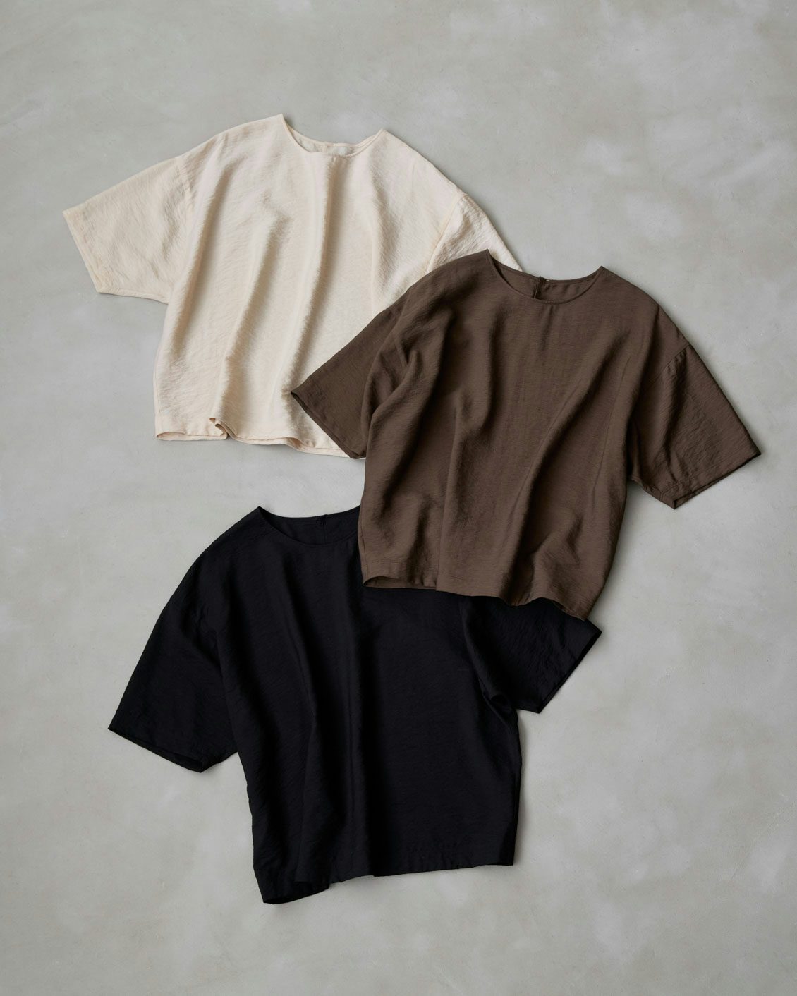 「涼しさも、品のよさも」きれい色のTシャツブラウス(エクリュ、ブラウン、ブラック)
