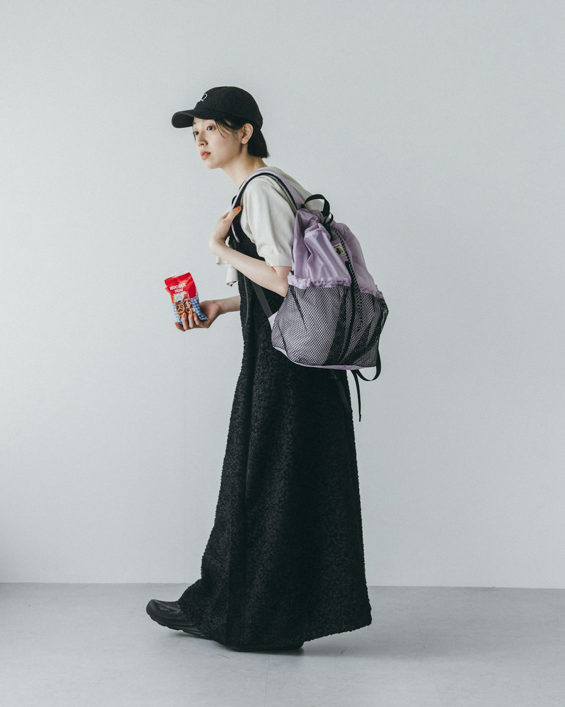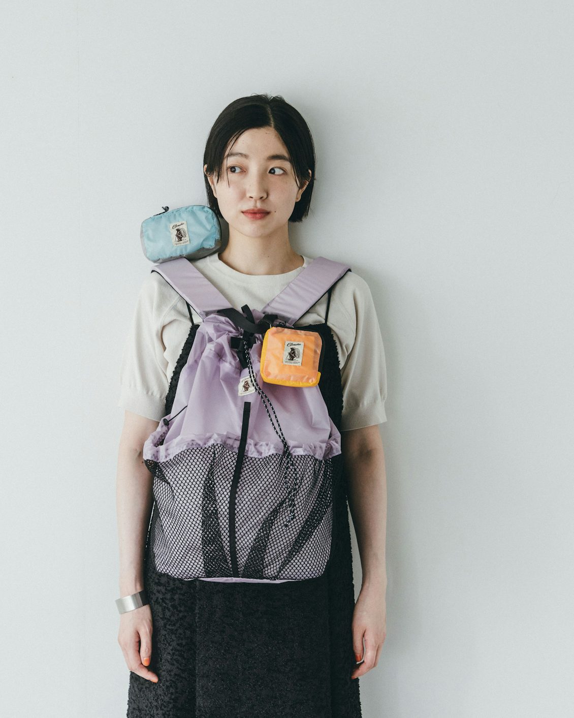 メッシュのポケットや内側にある仕切りのおかげで、収納のしやすさも抜群。普段のお出かけはもちろん、公園や水場、旅先などのシーンにも活躍してくれるバッグです。