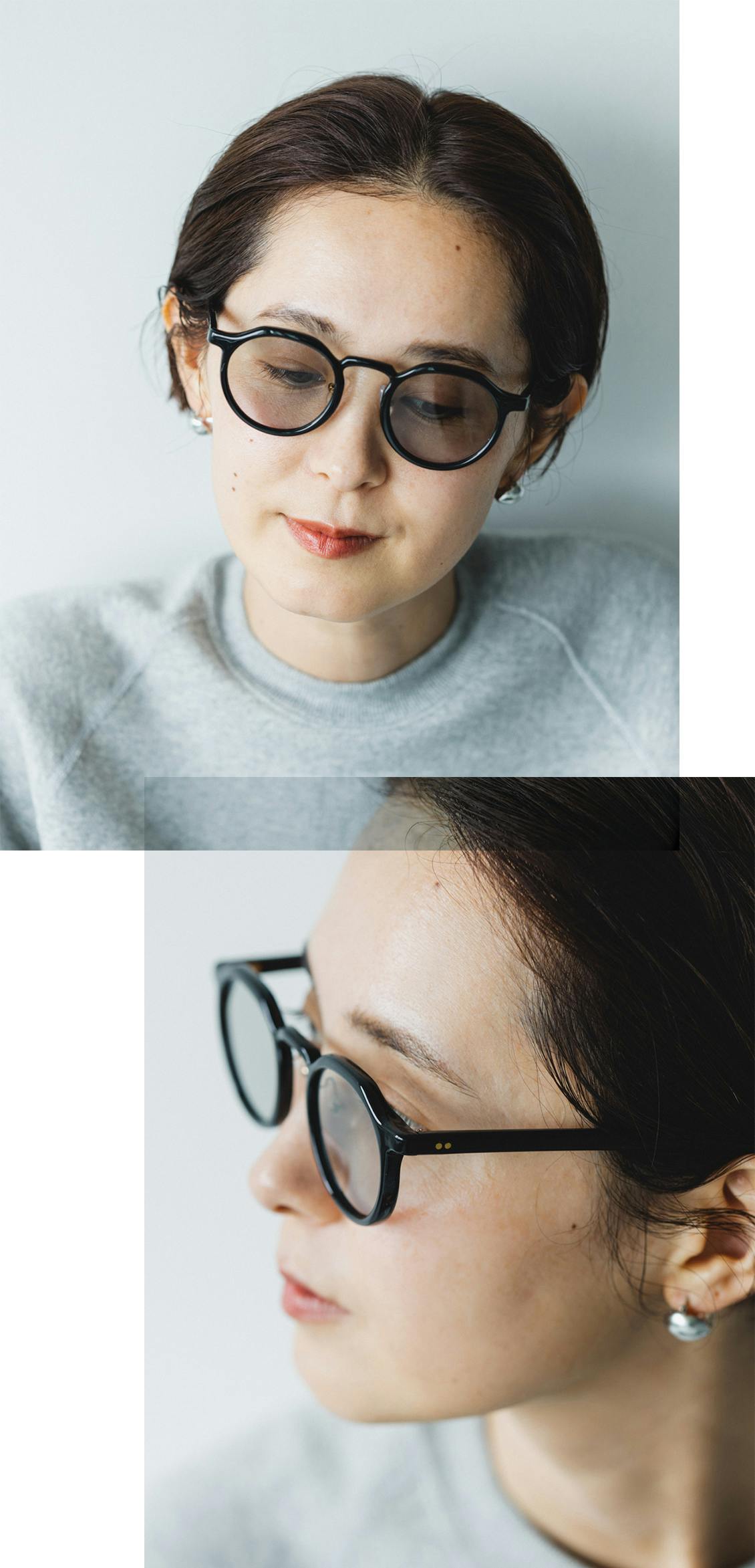 いつもと違うマニッシュで洒落た雰囲気を作りつつ、透け感があるフレームで、すっと表情に馴染みます。