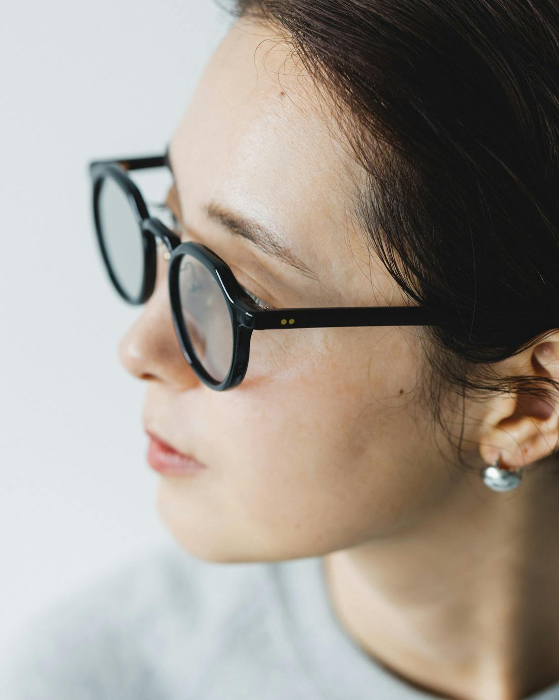 目元の印象を引き締め、顔立ちにメリハリを作ります。存在感があるものの、フレームの形に丸みがあるので、やわらかい雰囲気も保てますよ。