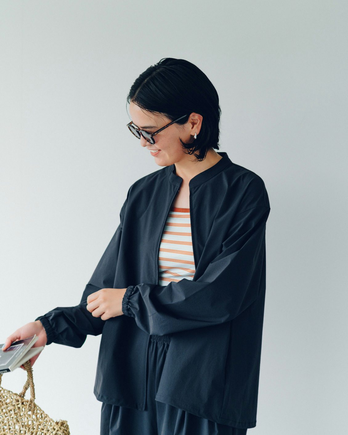 生地は接触冷感素材でほんのりひんやり、心地いい肌ざわり。蒸れが気になる季節でも、気持ちよく着られるようにしました。