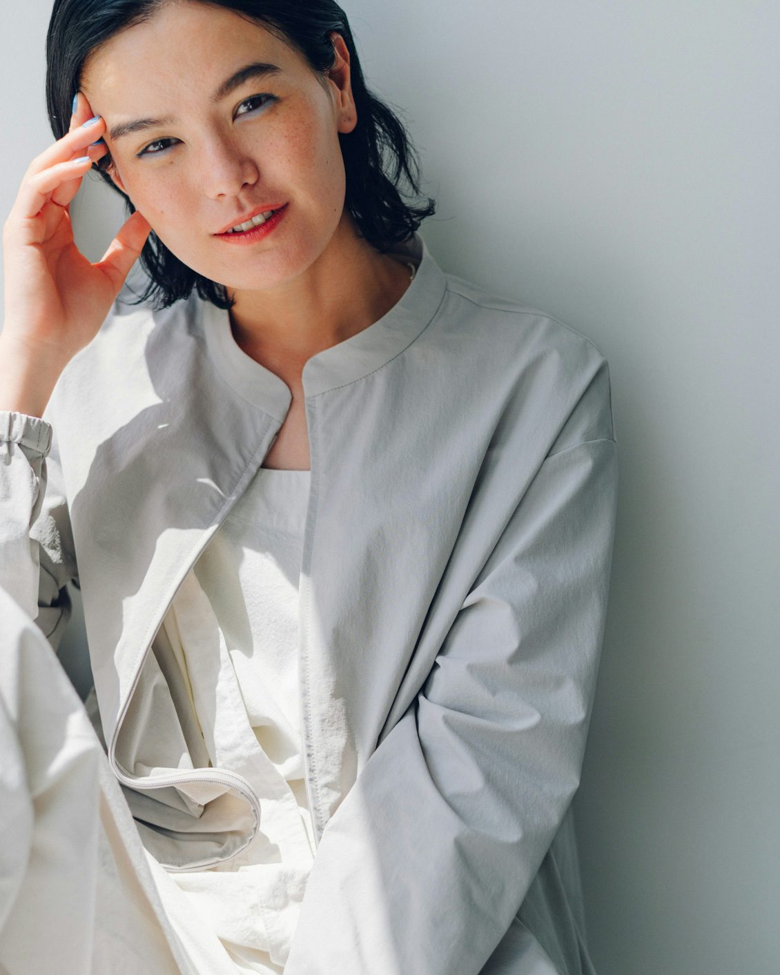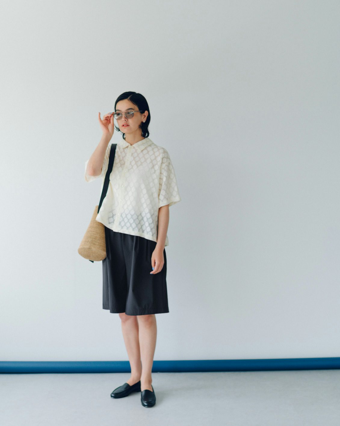 前後に入れたタックが、さりげない立体感をつくってくれるので、 一枚で着てものっぺり見えず、どこか上品さが漂います。