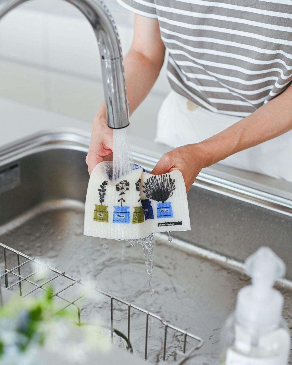 心なごむテキスタイルの「スポンジワイプ」は、北欧では定番の台ふきん。