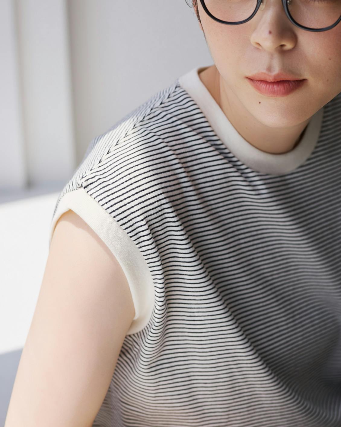 使いやすさ抜群の極細ボーダーに、こなれた雰囲気のシルエット、柔らかさに頬擦りしたくなる生地など、随所にきらりと技が光ります。