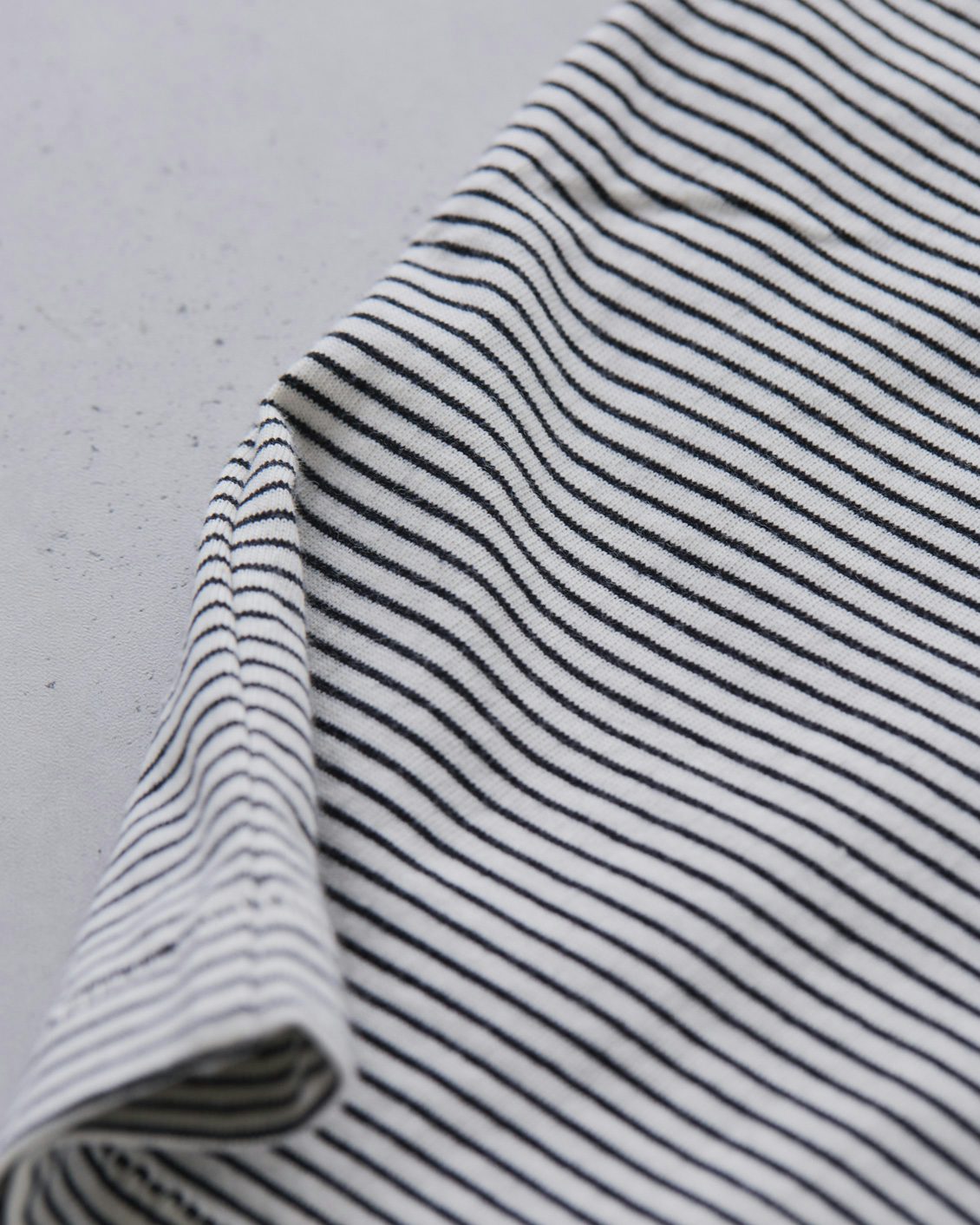 このTシャツ、何といってもこの「極細ボーダー」の塩梅が、絶妙なんです。