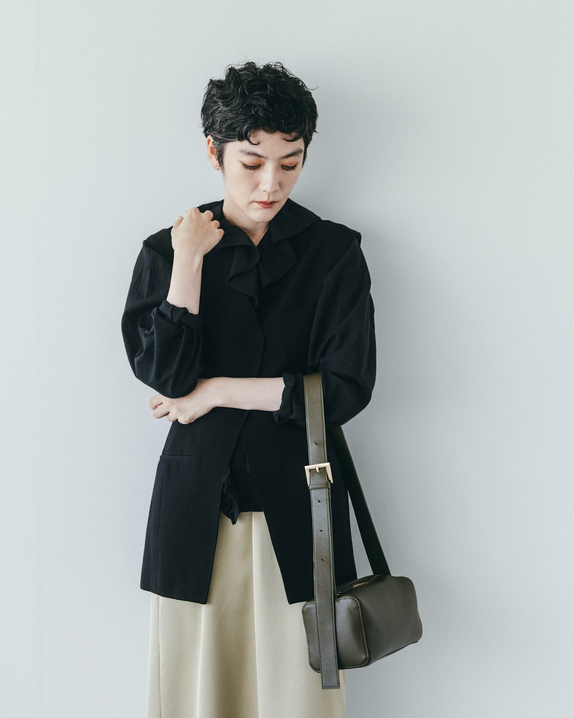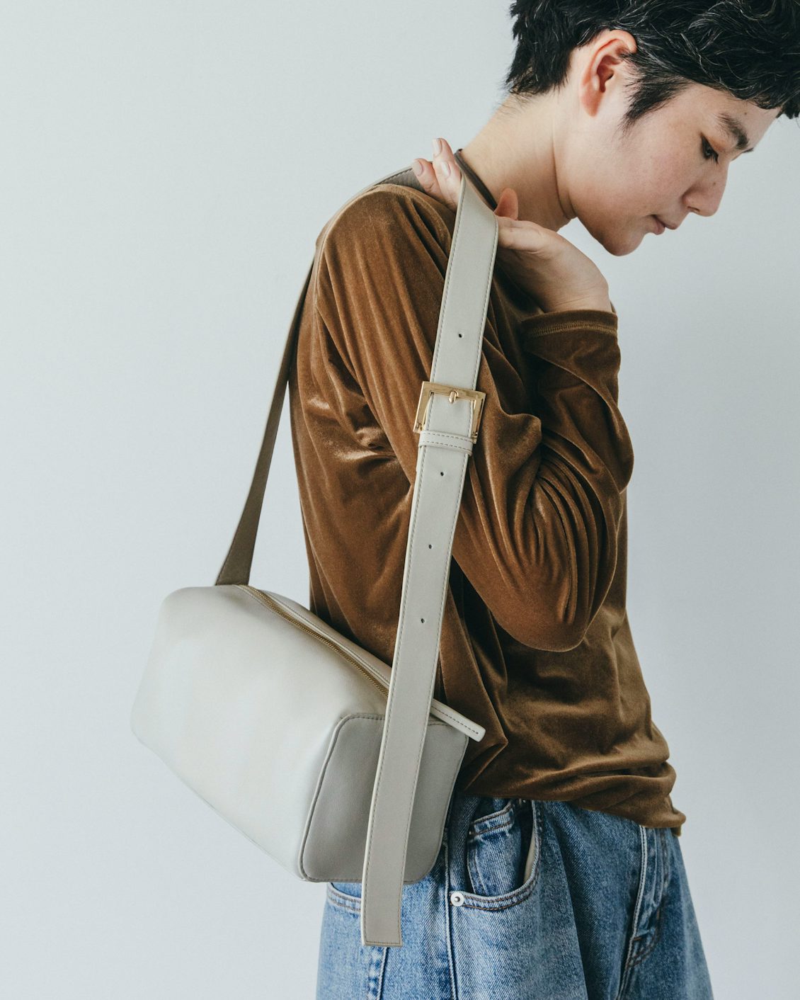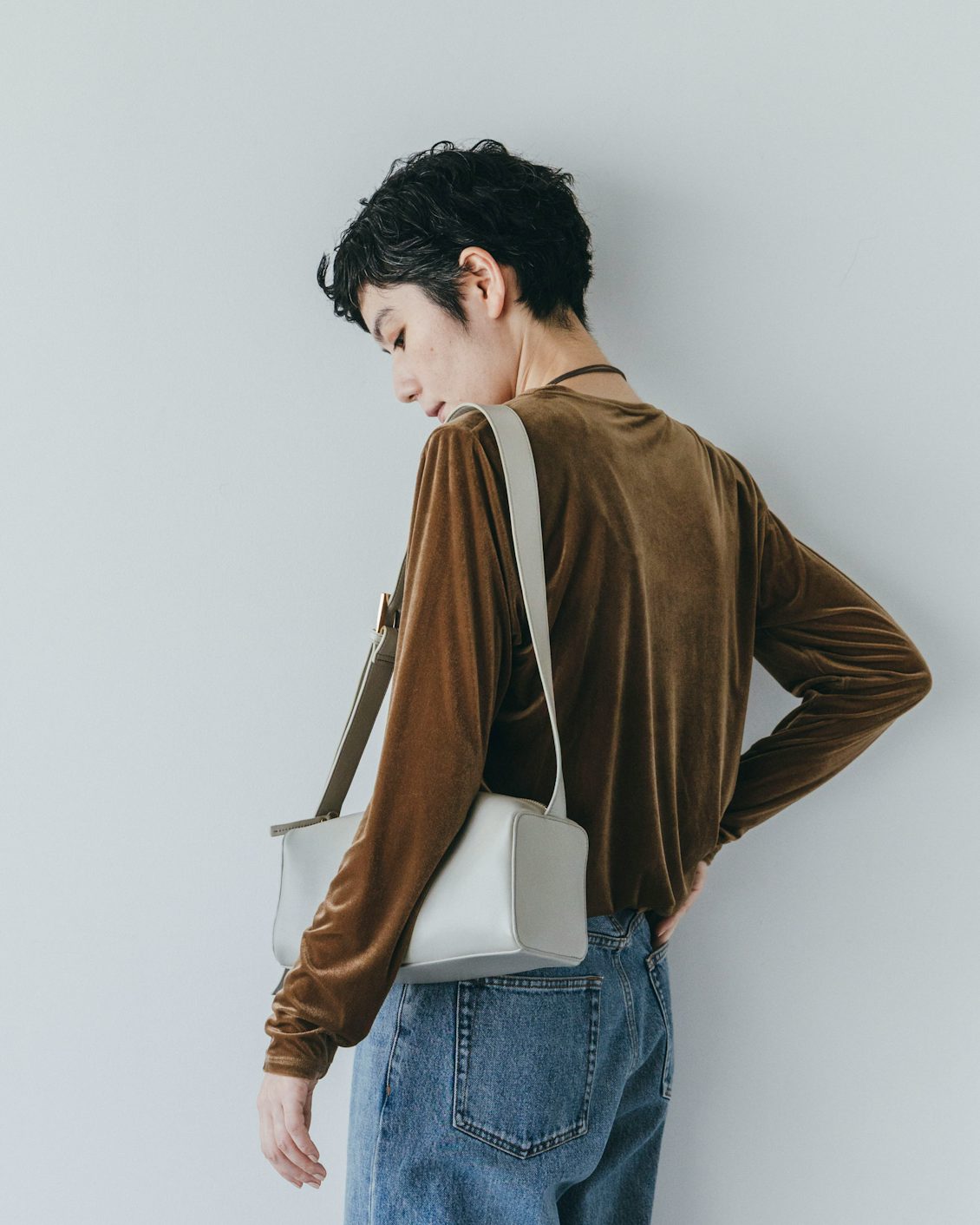 スタイリングに抜け感をつくってくれる、横長のボックスショルダー。