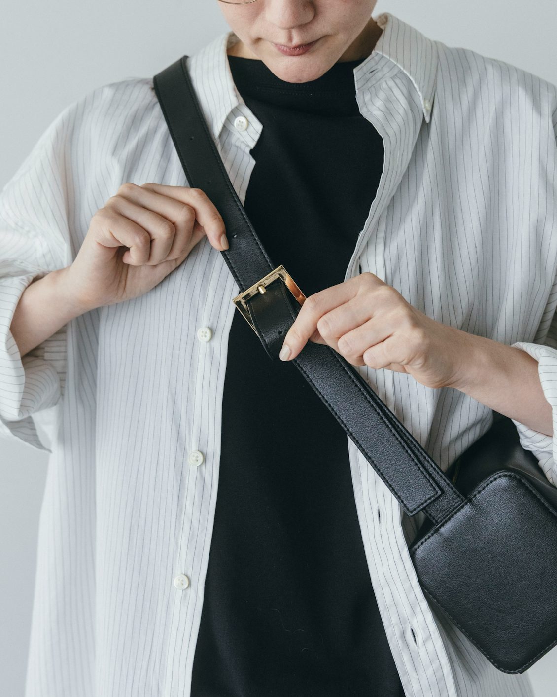 トレンドを楽しめる横長のボックスシルエットに、ゴールドのバックルがアクセント。