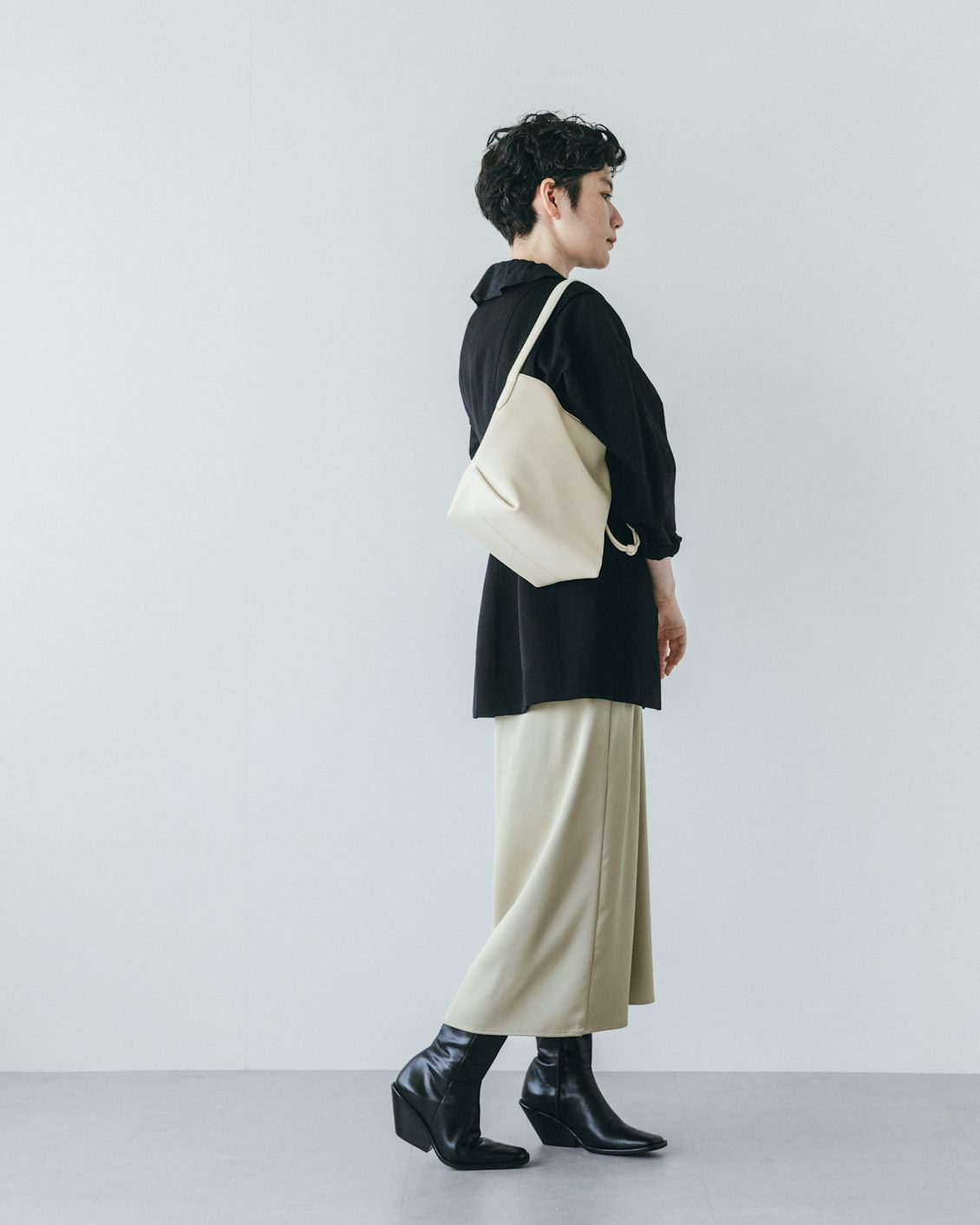 素材は軽くてやわらかく、上品な艶感を纏い。日常からちょっとしたオケージョンまで、どんなときも迷わず手に取れるバッグです。