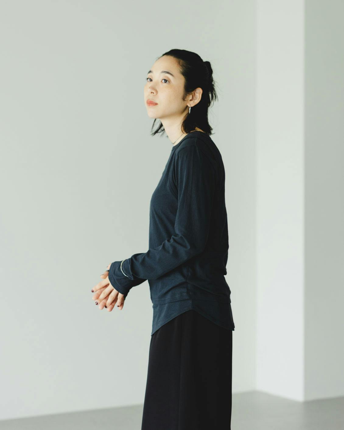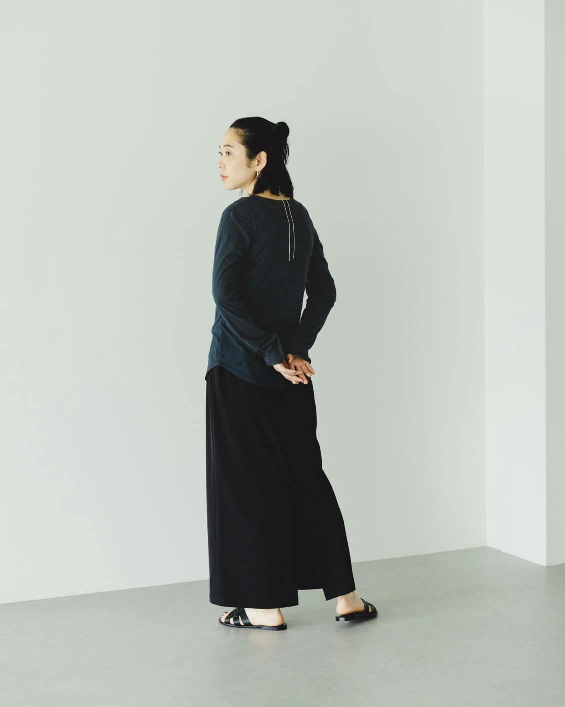 二の腕周りや身幅は身体に沿いすぎないゆるっとしたフィット感。気になる場所をさりげなくカバーします。