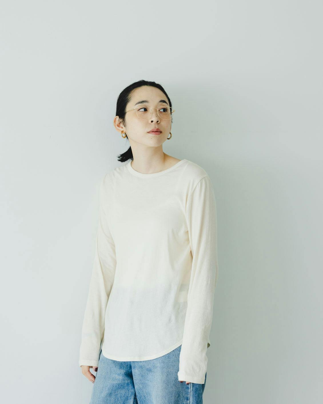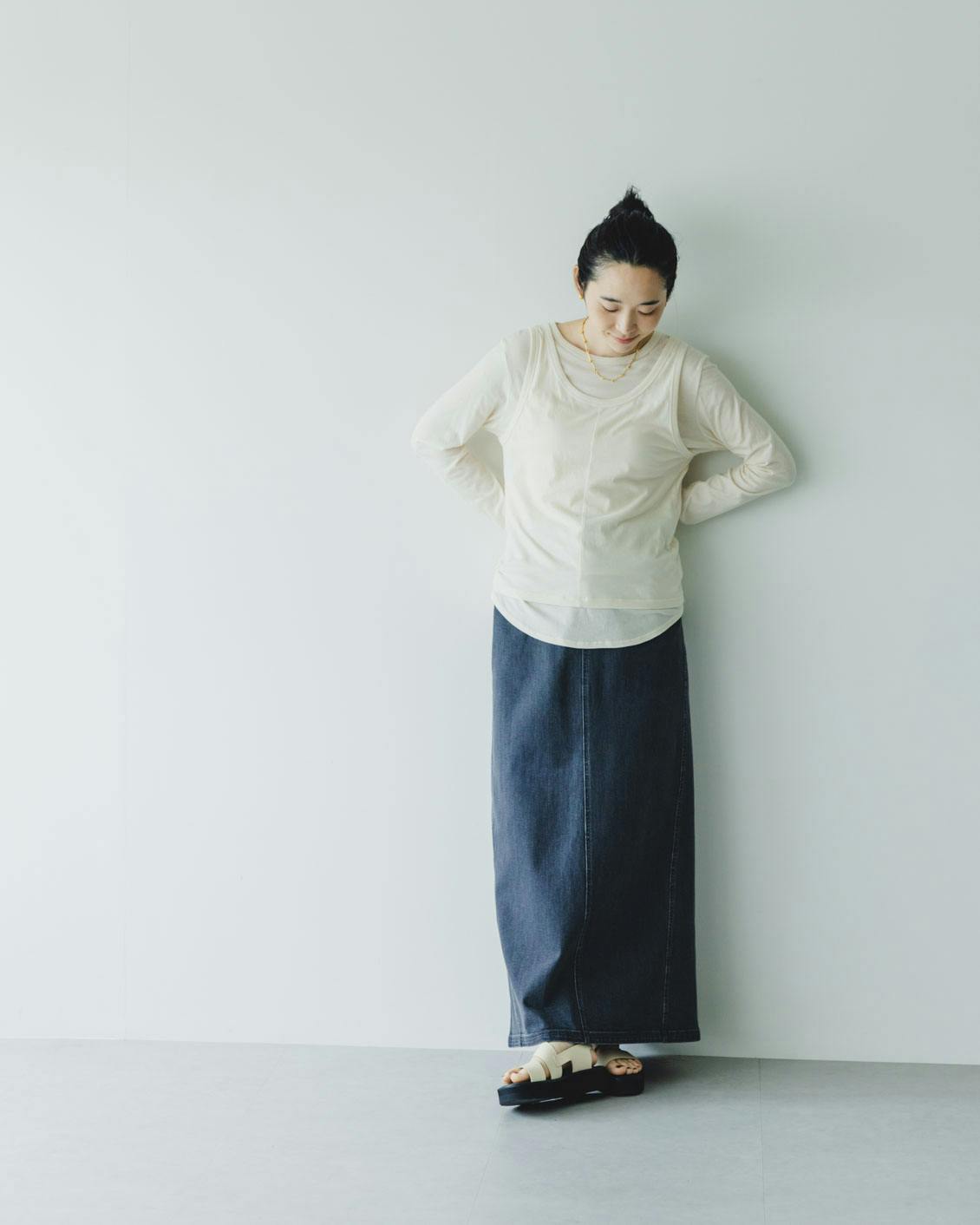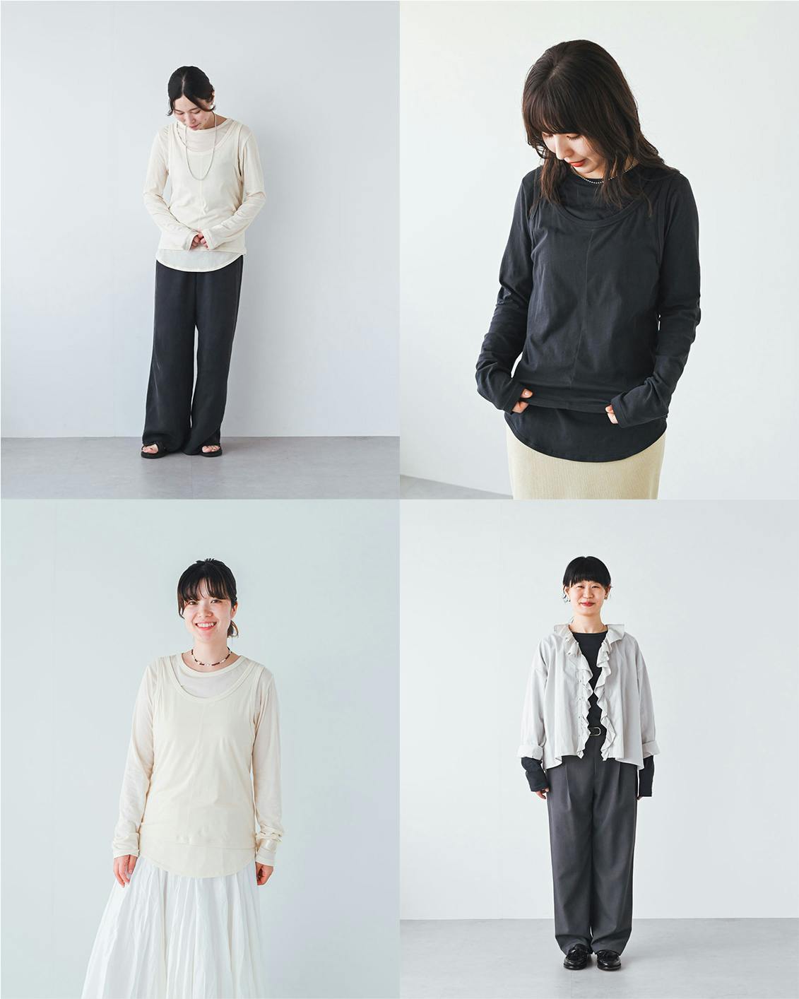 薄手でシンプルなロンTは、単体でビスチェやベスト・キャミワンピなどと重ねて、秋ならではのレイヤードコーデに大活躍。