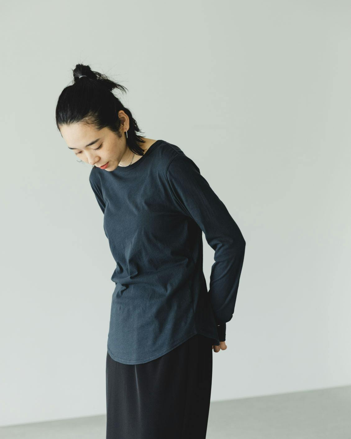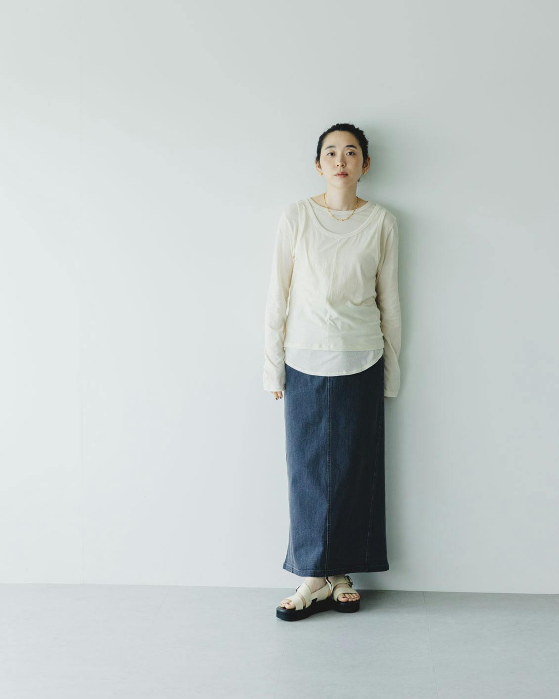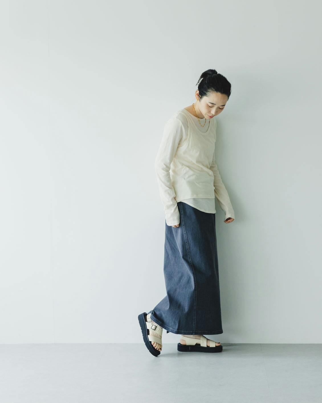 薄手でシンプルなロンTは、単体でビスチェやベスト・キャミワンピなどと重ねて、秋ならではのレイヤードコーデに大活躍。