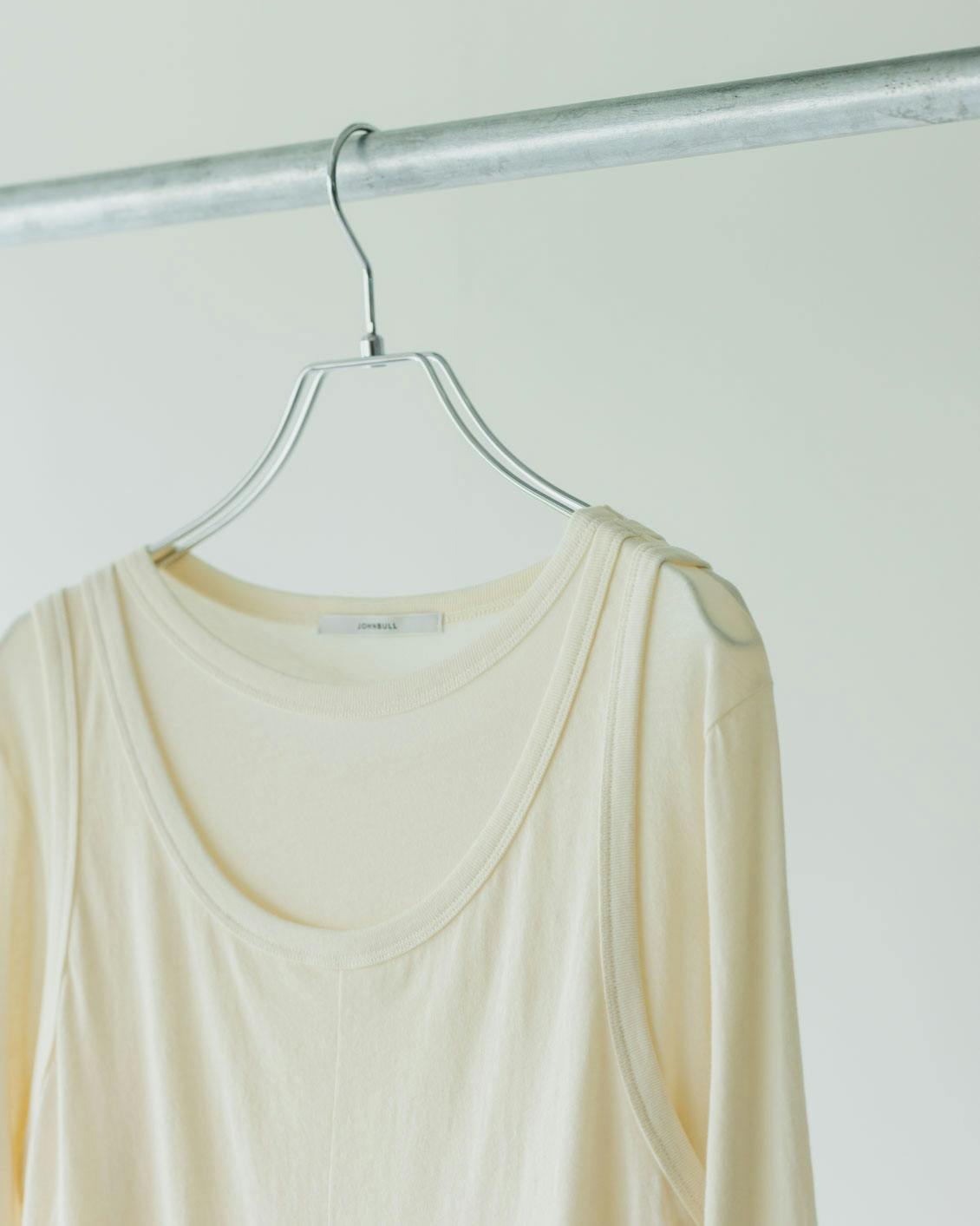 届いたのは、「ロンTとタンクトップのレイヤード」。この旬なアイテムに、JOHNBULLが大人が着やすい工夫を詰めこみ、完成した1着です。