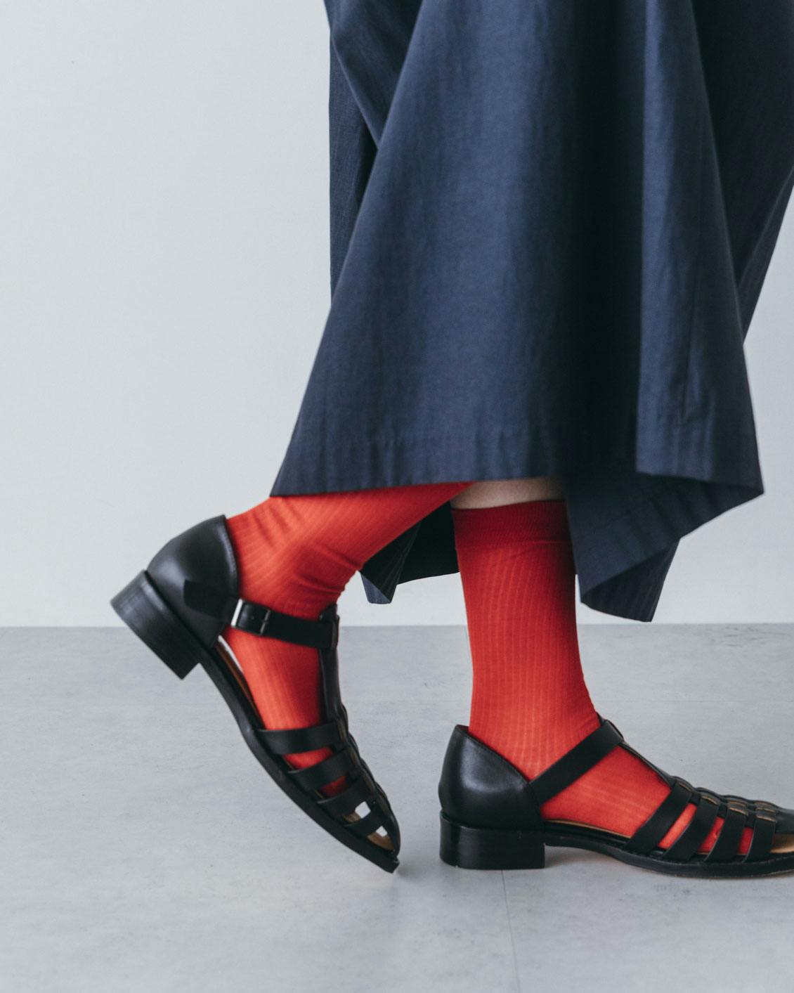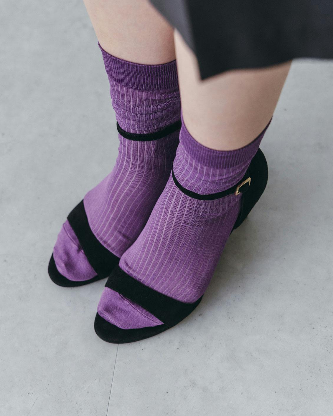 涼やかにトラッド、大人のためのシアーリブ靴下