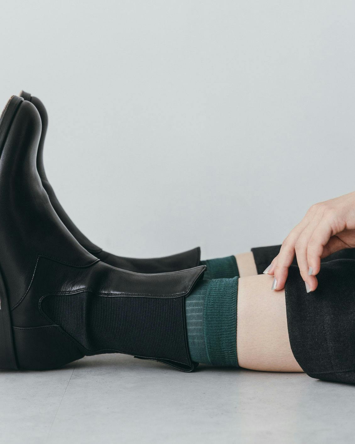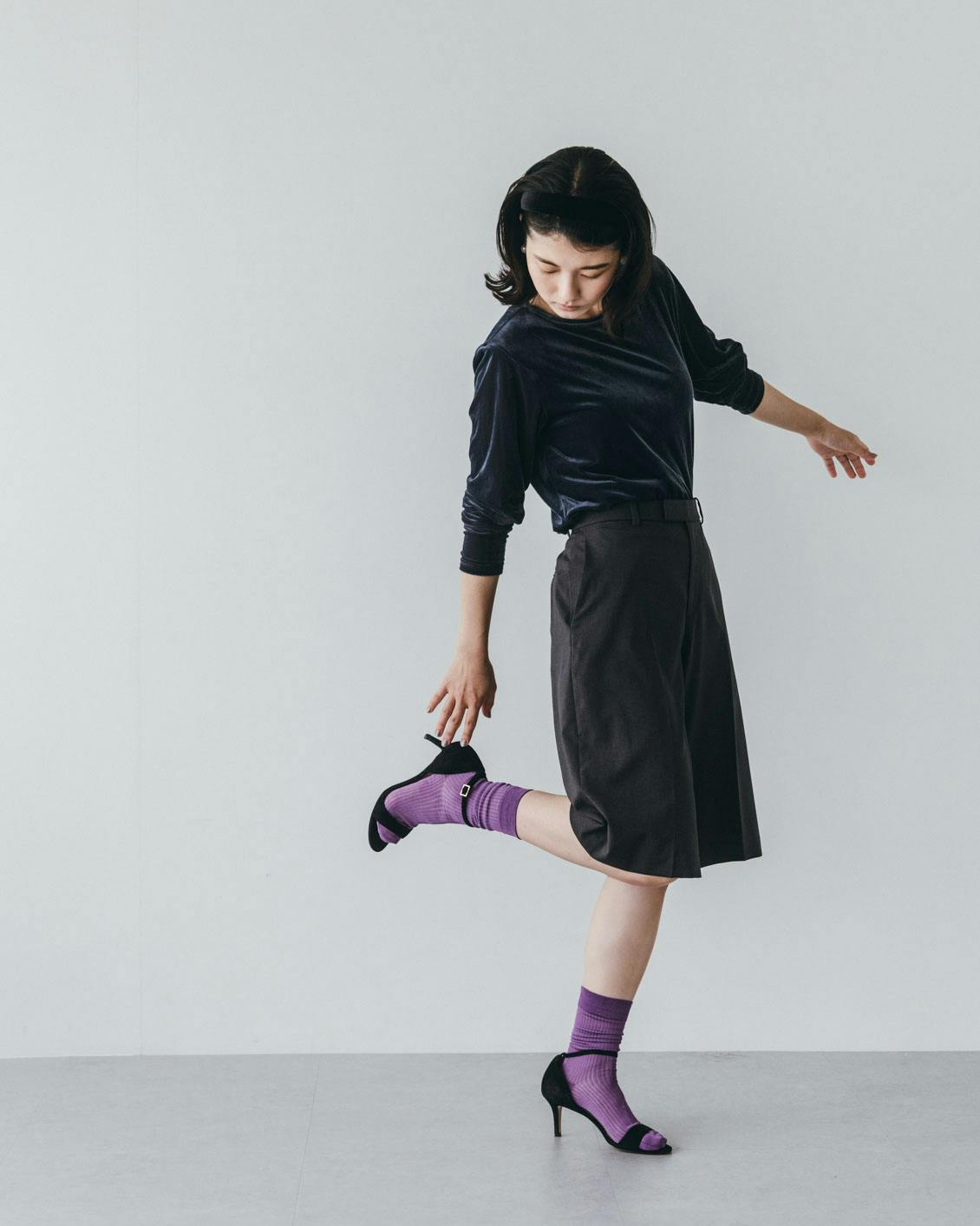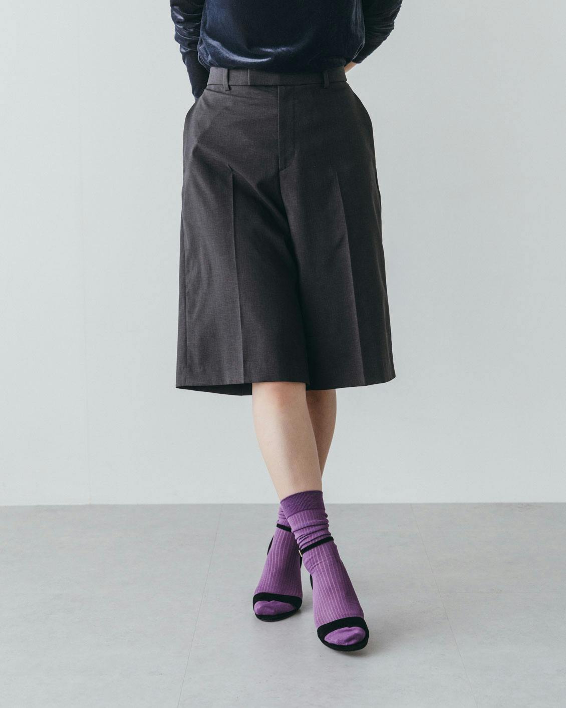 レザーシューズや、華奢なつくりのシューズが持っている雰囲気を損なわず、きちんと装いたいという場合にも、薄手ってとっても便利。