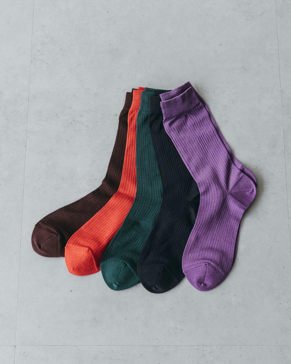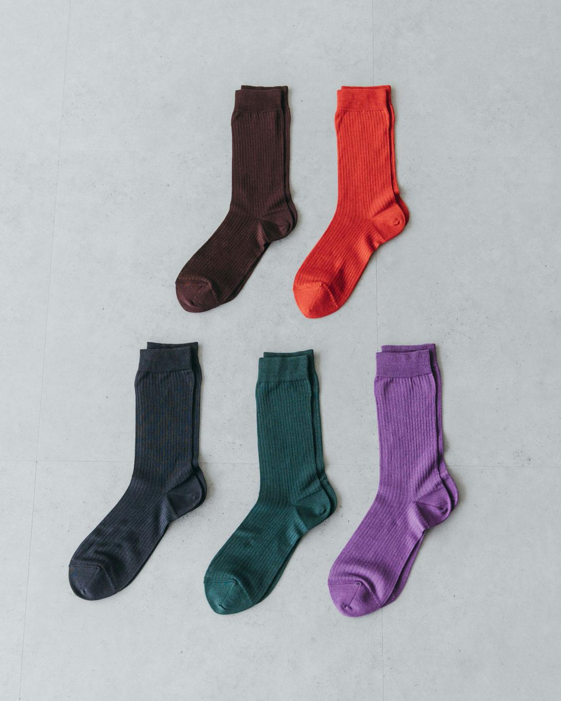 どんな季節にも履ける、全8色の「ベーシック靴下」など、当店オリジナルのくつ下をたくさんご用意しています。