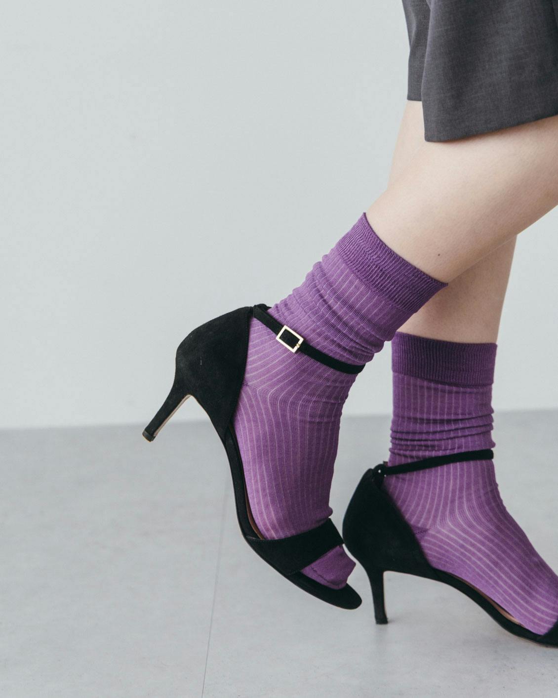 いつものスニーカー、サンダルに合わせるだけでコーディネートに抜け感が出て、旬のムードを取り入れられるシアーソックス。