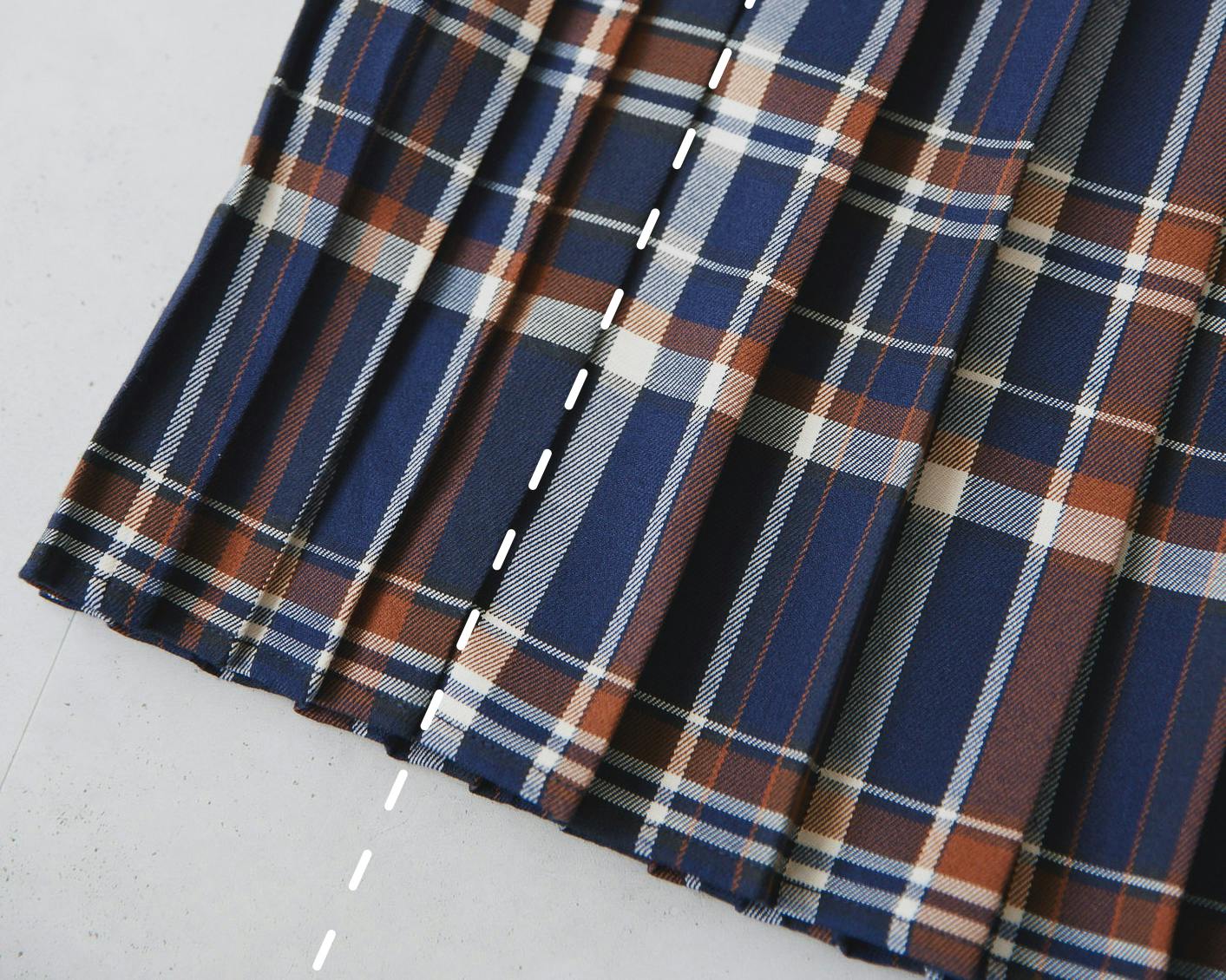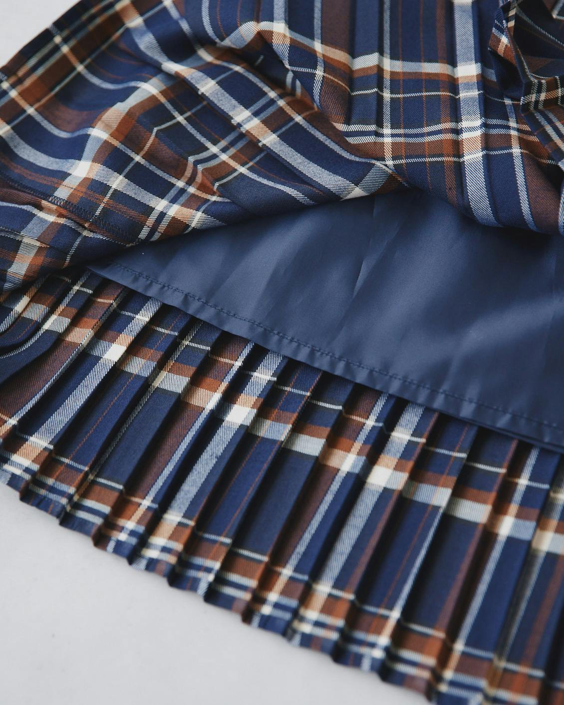 スカートの糸には形状安定性に優れたポリエステルが含まれていて、永久保持ではないものの、プリーツが崩れにくいようになっています。