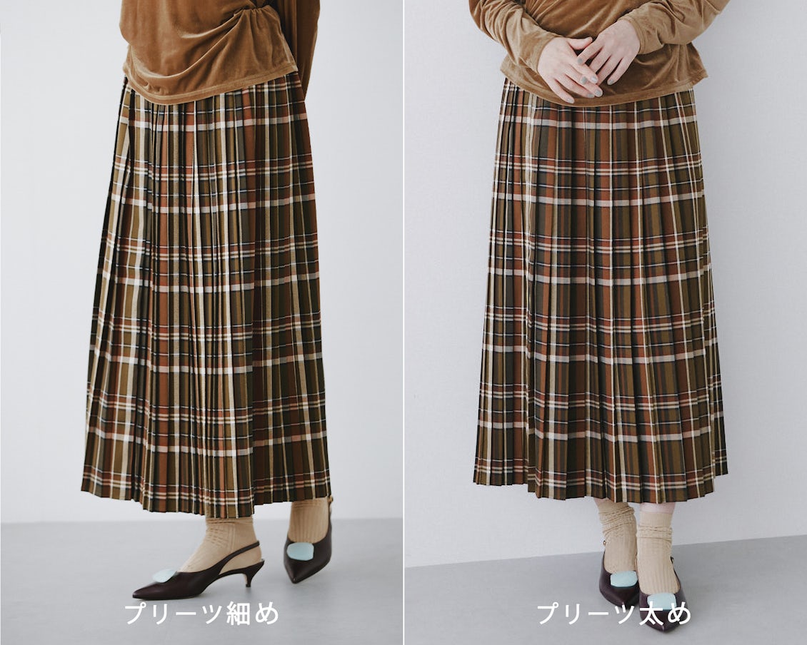 ほんの数センチのプリーツ幅の違いなのに、着比べてみると雰囲気が変わるから不思議です。