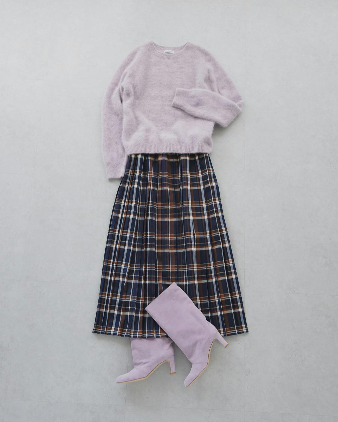 (ラベンダーニットのコーデ)