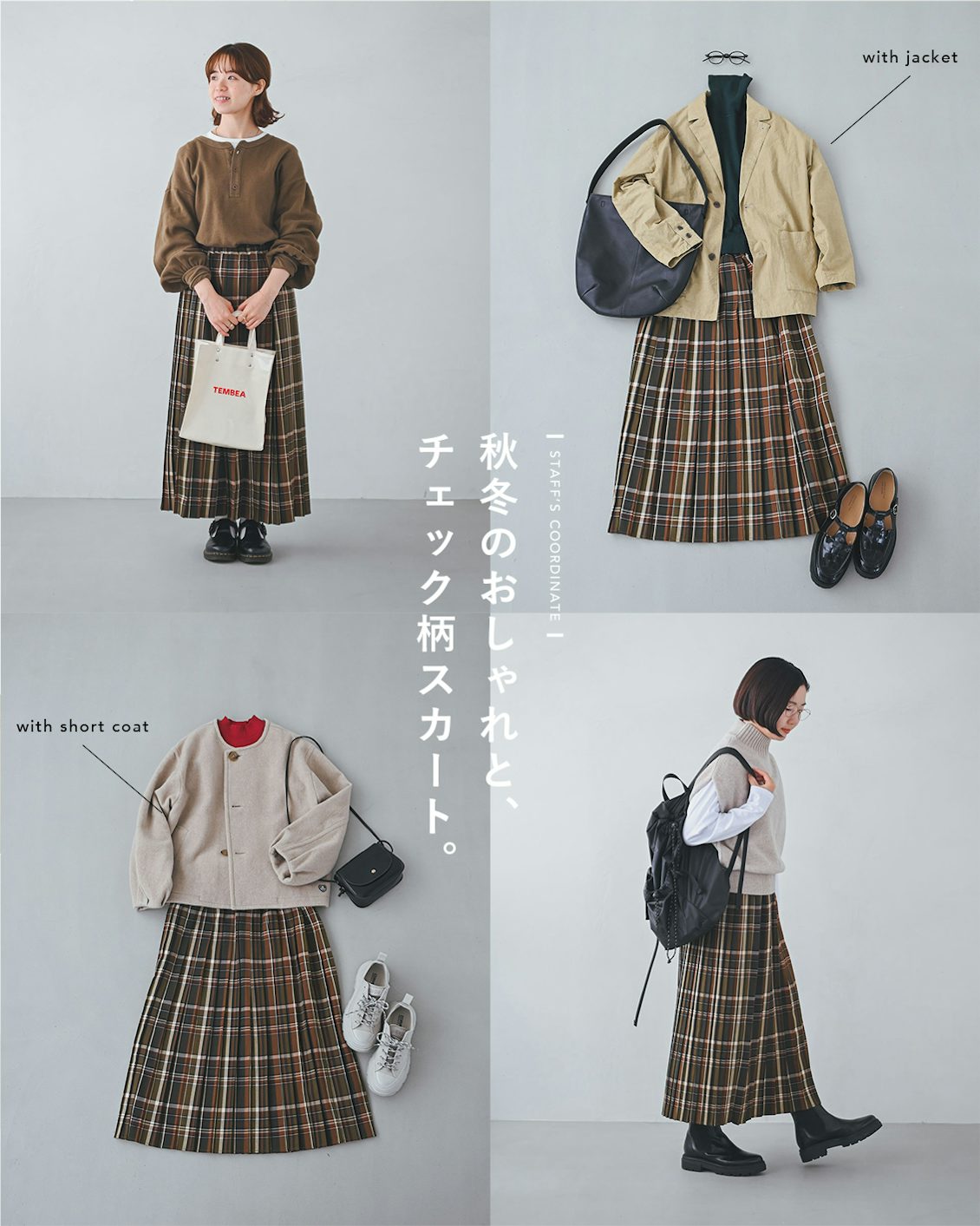 以前から大好評の、千鳥柄のプリーツチェックスカートも発売中。