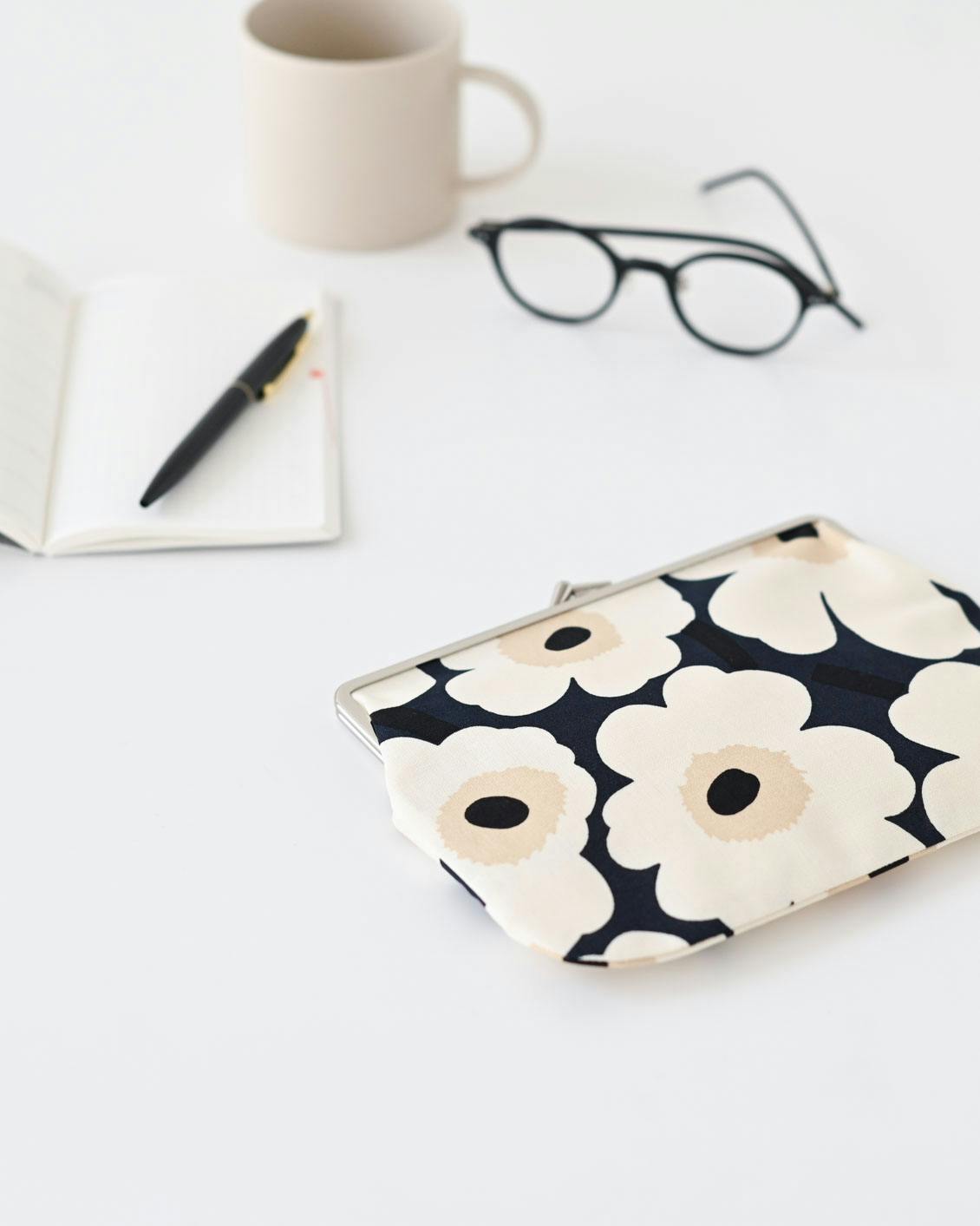Marimekko「ウニッコ」柄のがま口ポーチ
