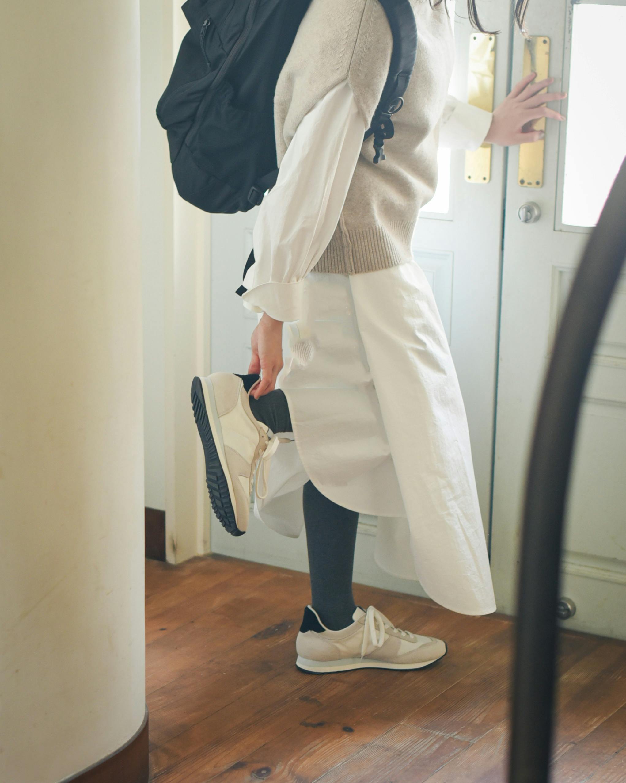 見た目もシンプルで普段のコーディネートに馴染み、靴を脱ぐ場面でも恥ずかしくないのが何よりも嬉しいポイントでした◎
