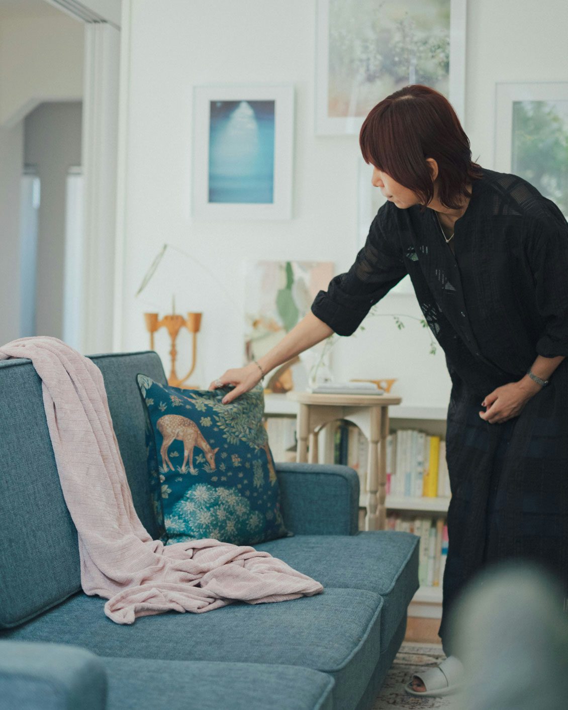 東京郊外にある60平米・1LDKの団地で1人暮らしをされており、「暮らしの中の布が好き」というほど日々の暮らしの中で布使いを楽しんでおられる重松さん。
