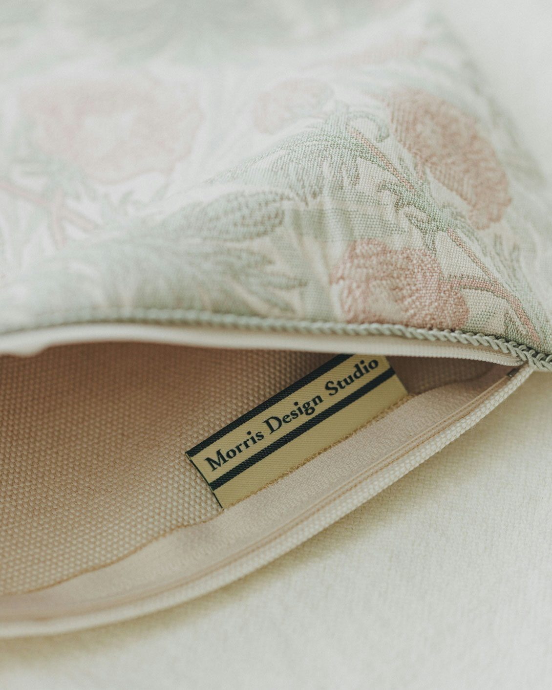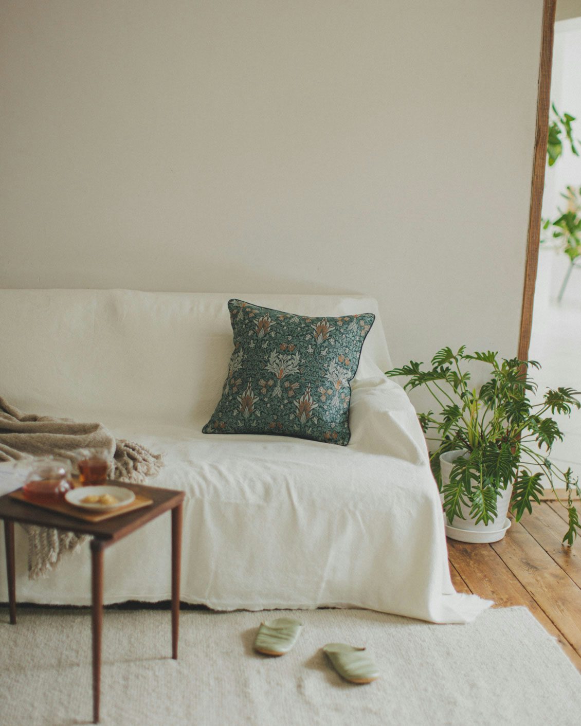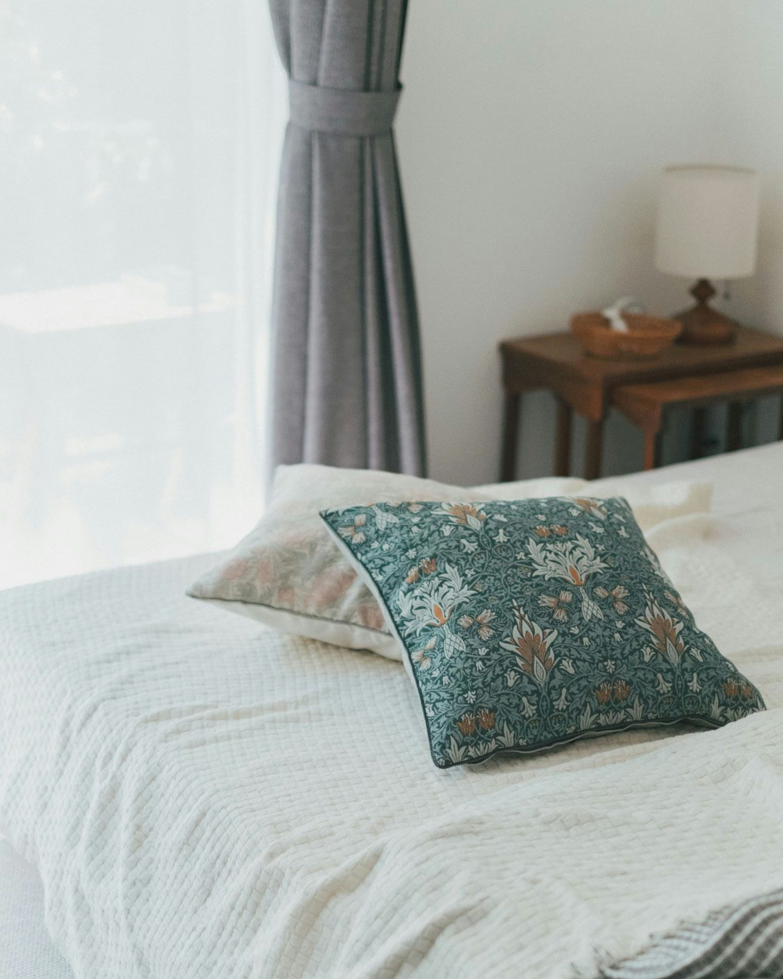 そんな想いを募らせて、今回モリスのテキスタイルを贅沢に使い、お部屋に置くだけで気持ちまで華やぐようなクッションカバーを企画しました。