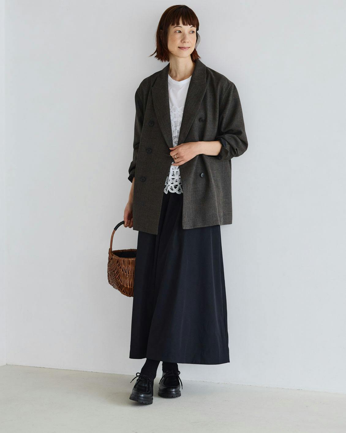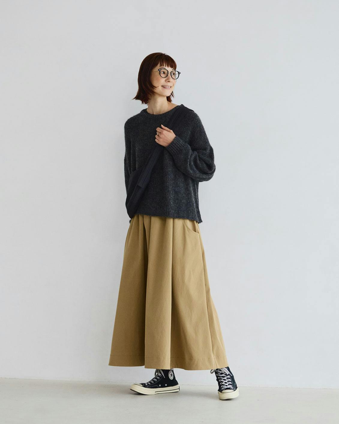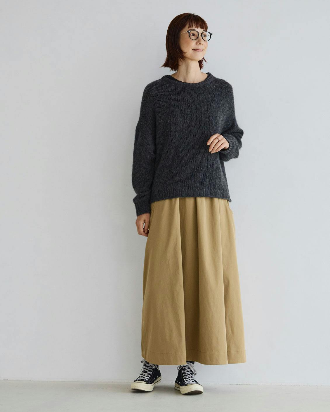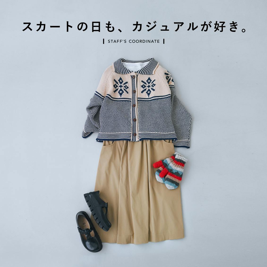 「スカートはたくさん着回せる、名脇役なアイテムですよね。春、秋、冬と3シーズン活躍してくれて、オンオフ両方とも頼れます。